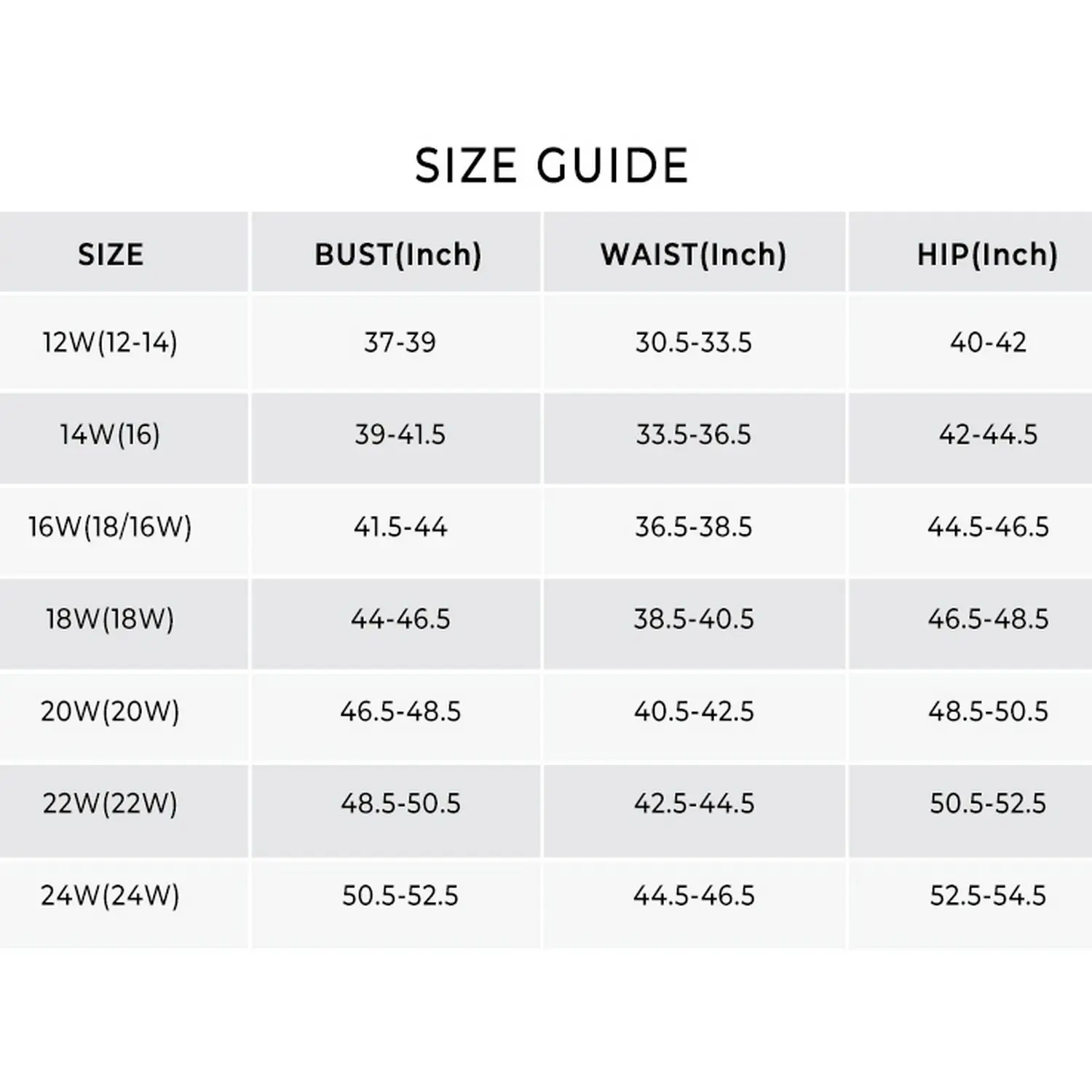 ·Beach Cover up Swimwear: 12 Plus (US 12W), 14 Plus (US 14W), 16 Plus (US 16W), 18 Plus (US 18W), 20 Plus (US 20W), 22 Plus (US 22W), 24 Plus (US 24W).