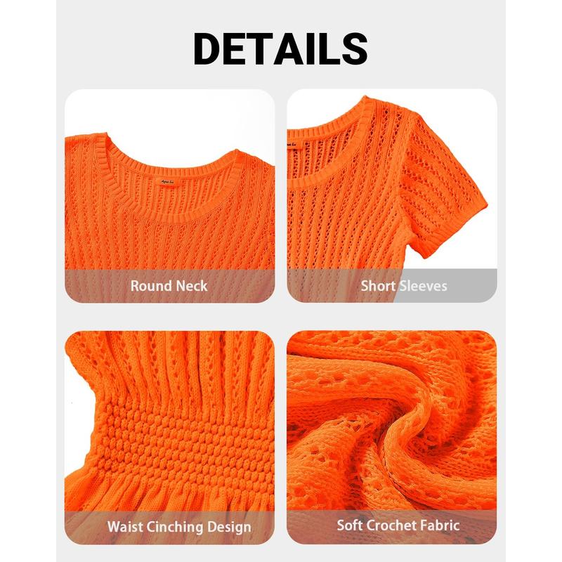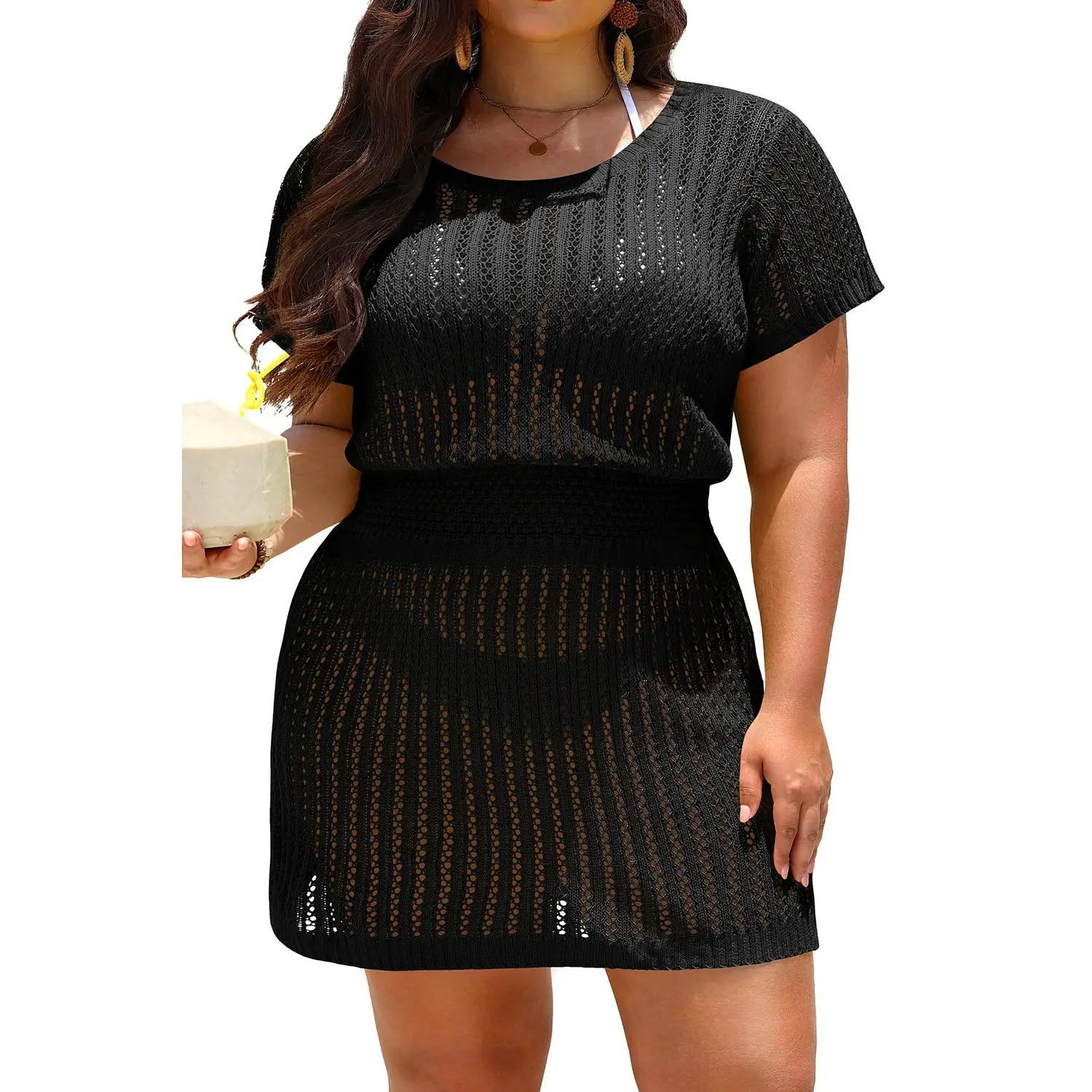 ·Plus Size Swimsuit Cover Up: The crochet cover up features a round neck, short sleeves and a waist-cinching design for a stylish, flattering look.