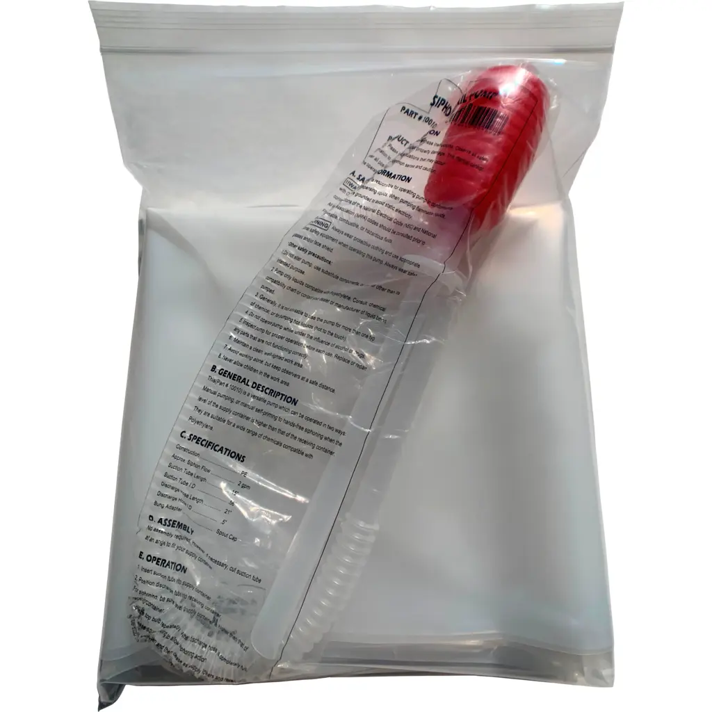 The kit includes a one-liner, a low-density polyethylene bag, and a manual hand pump. This setup provides a closed and safe system for storing and distributing water. With the included pump, you can easily remove water from the bag as needed, making it a convenient and hassle-free solution.