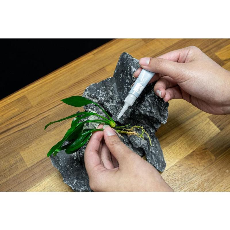 I have used this glue extensively across my aqua scales 20 gallon and in MOST cases it works well. That said, the bonds have broken on a few plants over time before the plants could fully establish themselves on the hard scape. Perhaps more user error than fault of the product, but when this happens it does leave some white residue on the disengaged surface which doesn’t look great.