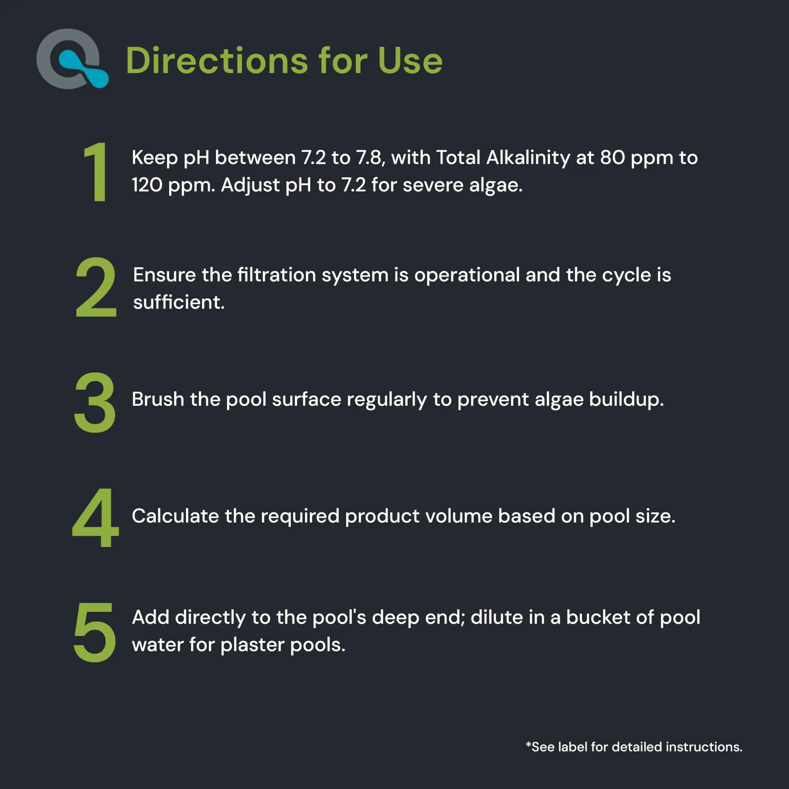 Unique, Non-foaming & Non-staining algaecide that removes & prevents algae for 3 months. This copper algaecide is the answer to properly removing algae from your pool.