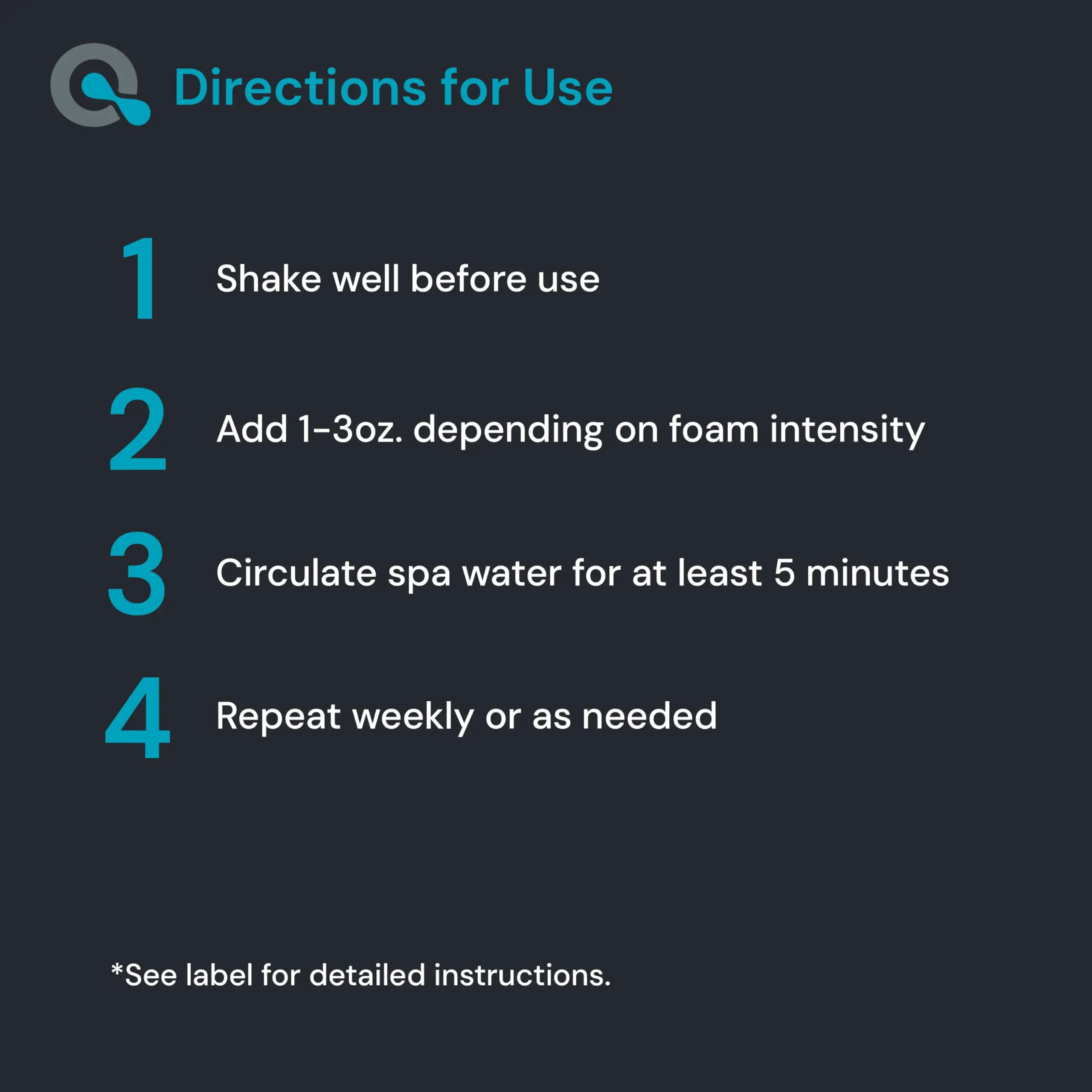 ·Add 1-3oz of spa foam eliminator to foamy water.