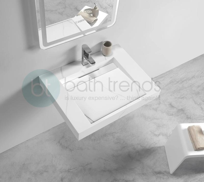 Aquamoon Venice 24" White Carrara Solid Surface Integrated/Countertop Infinity Sink