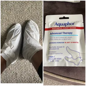 Conclusion: Aquaphor Repairing Foot Masks are a convenient and effective way to hydrate and moisturize dry feet. Infused with natural ingredients, these foot masks provide intense hydration in just 10 minutes. Perfect for anyone looking to restore soft, smooth skin on their feet and heels.