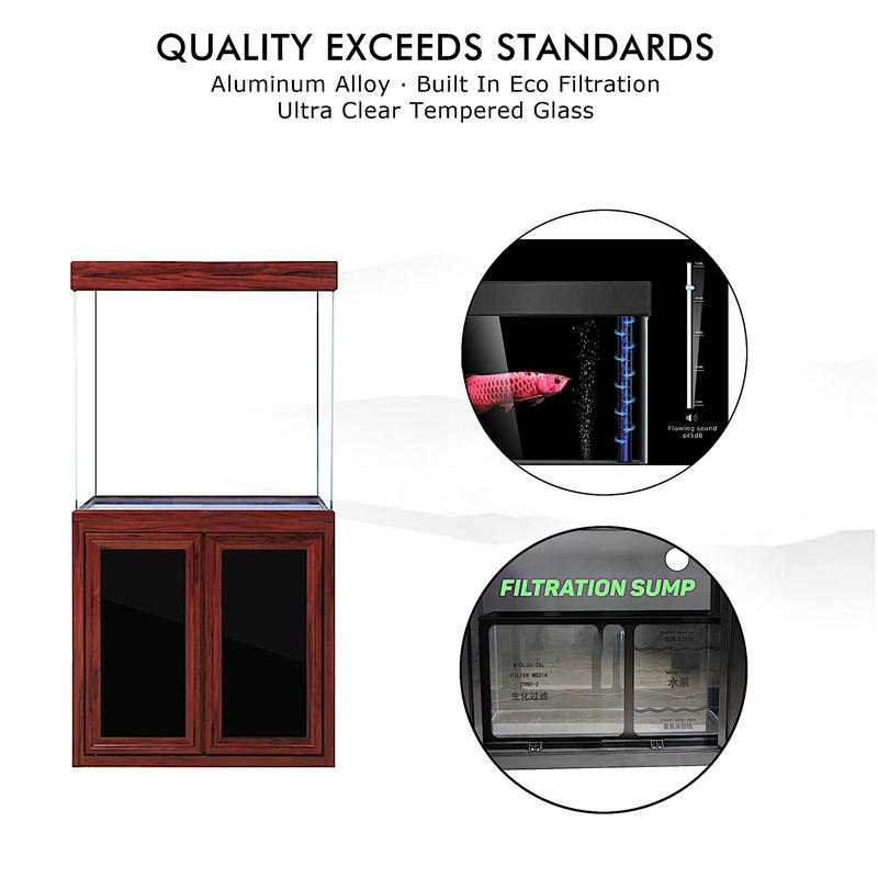 ·Advanced Filtration: The built-in sump system within the cabinet includes a wet-dry filtration setup and modular filter compartments for personalized maintenance.