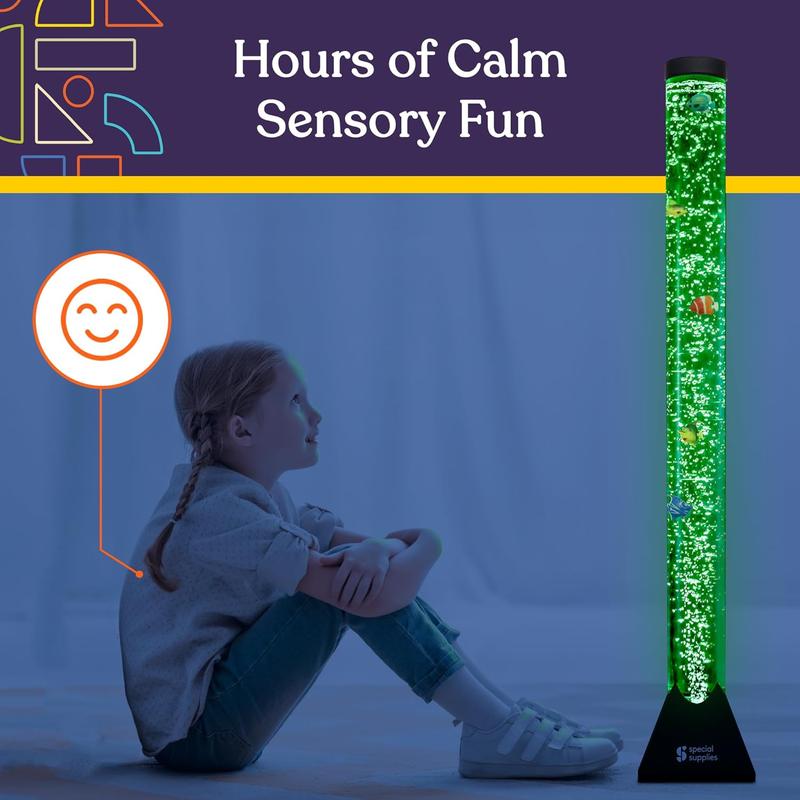 Help ease overwhelming emotions and refocus restless minds and bodies with a fun, colorful, and engaging sensory bubble lamp with free-floating fish from Sensory Supplies.