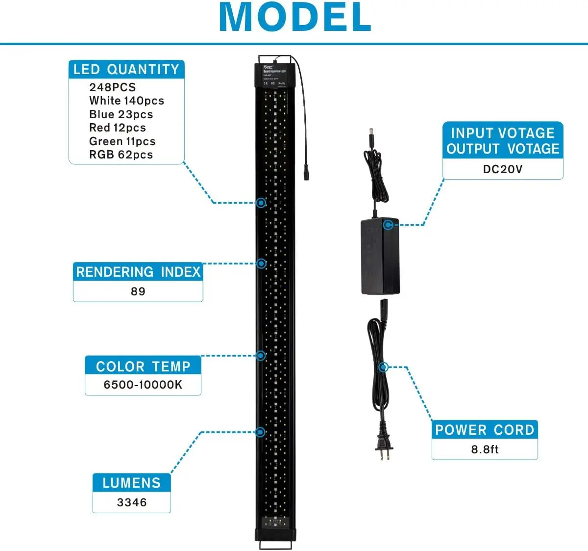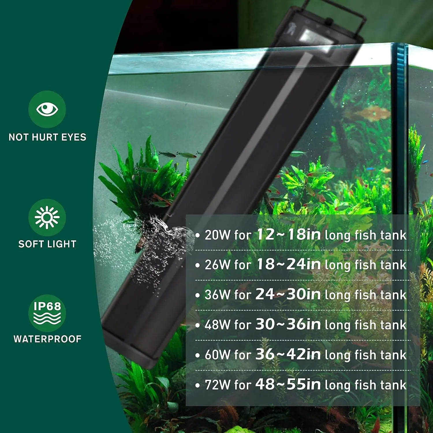 PS: No matter what time you set the end of the night, the lights will not turn off immediately, the fish tank light will turn off completely after 15 minutes. The brightness of the light for these 15 minutes is slowly dimmed until there is no. The purpose is not too scared your fish, not to suddenly turn off the light and not to suddenly turn on high brightness, which will give the fish a buffer stage.
