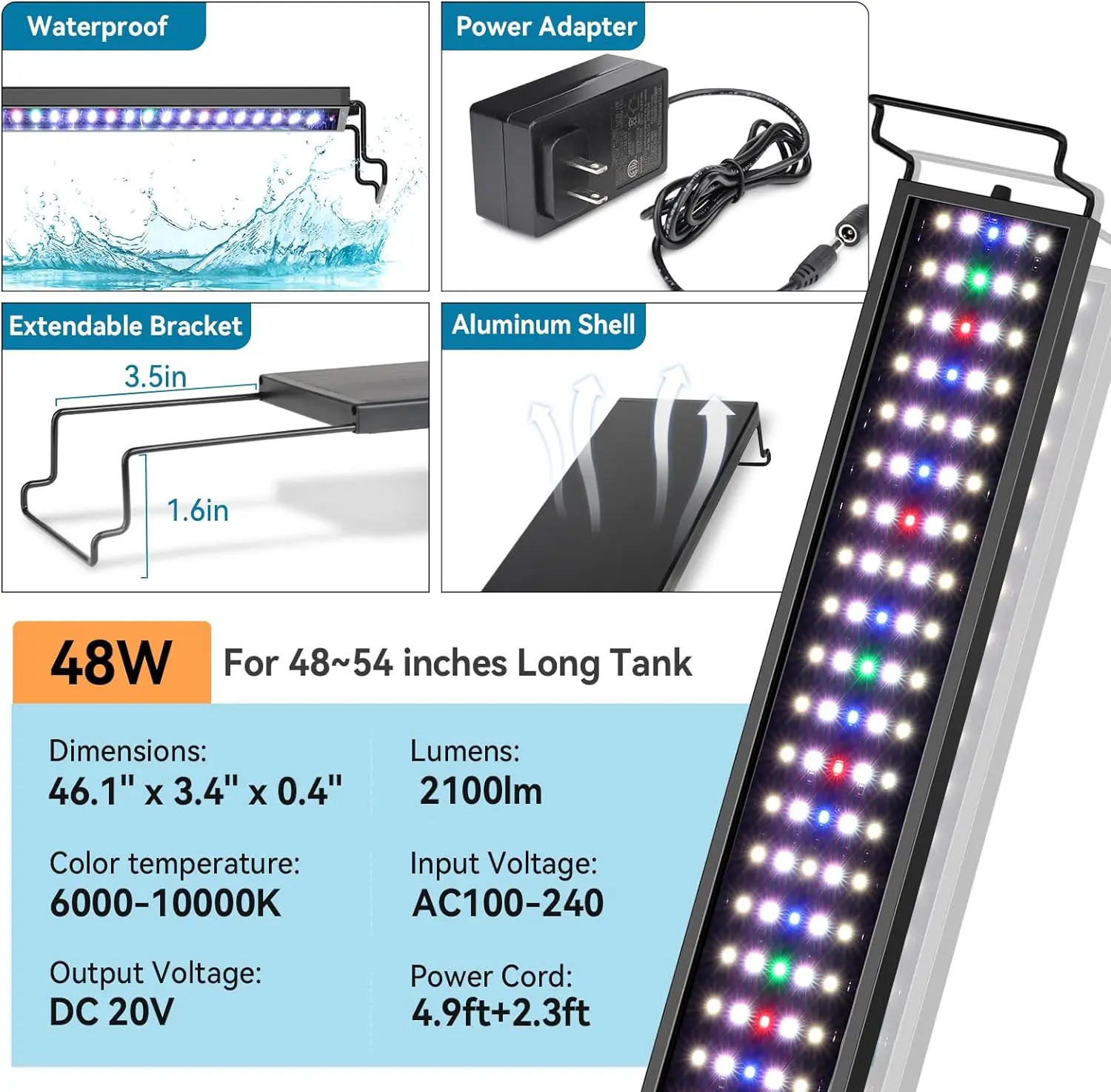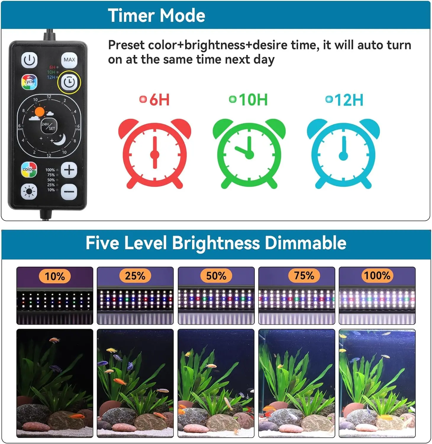Hygger newly upgraded 24/7 aquarium lighting fish tank light using high-quality 5054 lamp beads and 2835 lamp beads offer adequate illumination, as well as no flicker, high color rendering index, and color temperature optional wide range.