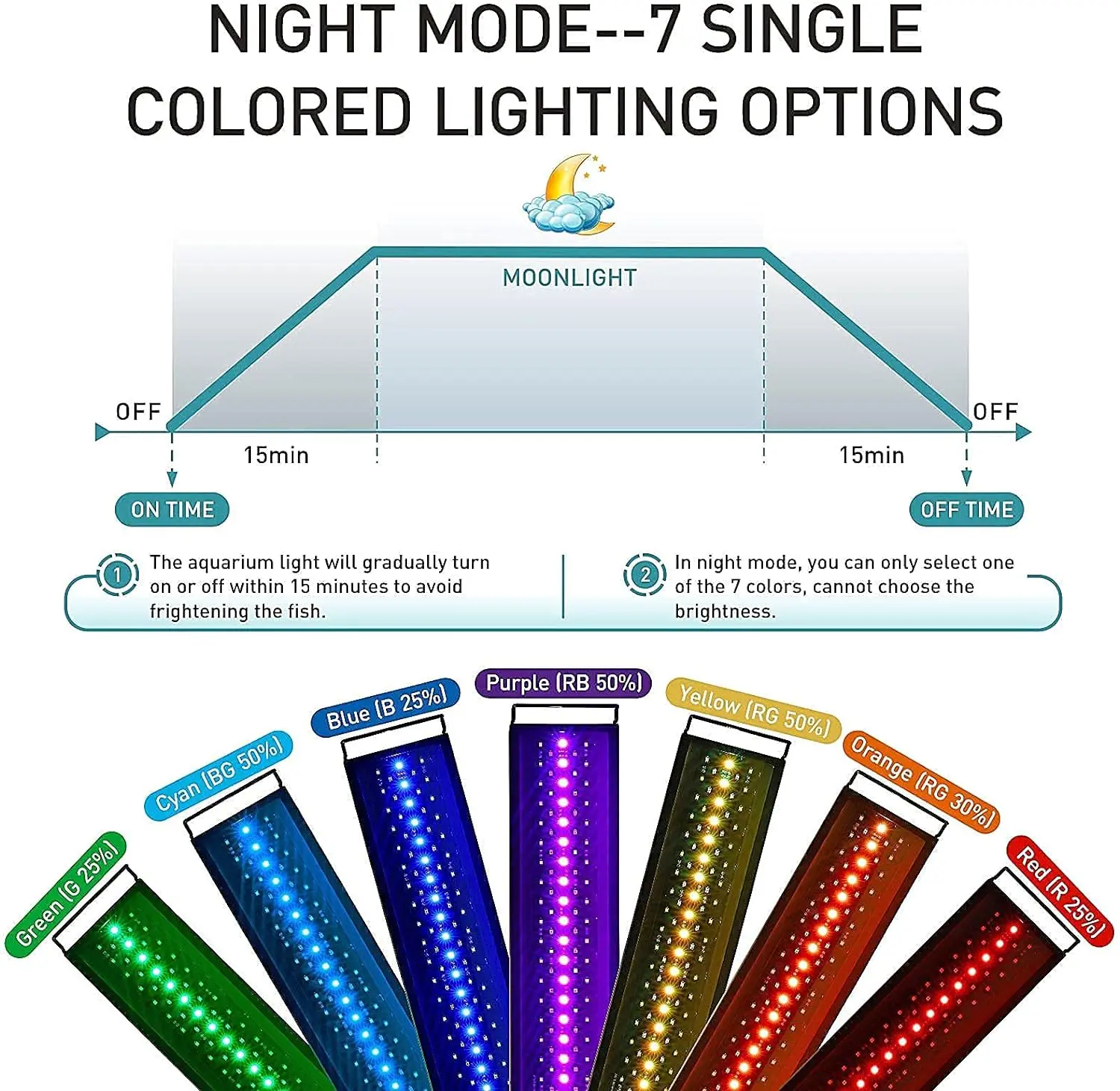 5. Power off memory function. This WRGB slim LED aquarium lighting use IC memorizer, after the light resumes work, the setting of fish tank light will not lost. Just need to set the local time.