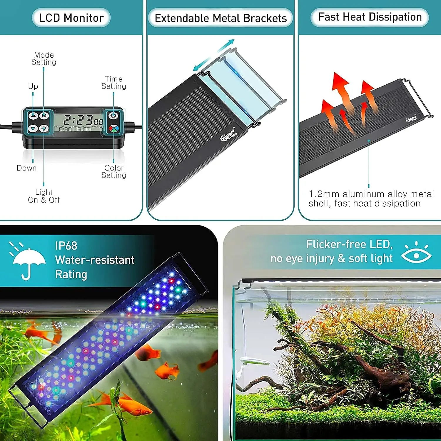 1. hygger high-quality dimmable aquarium plant light makes the aquarium water looks more sparkly clean and the color of the water plants is lifelike.