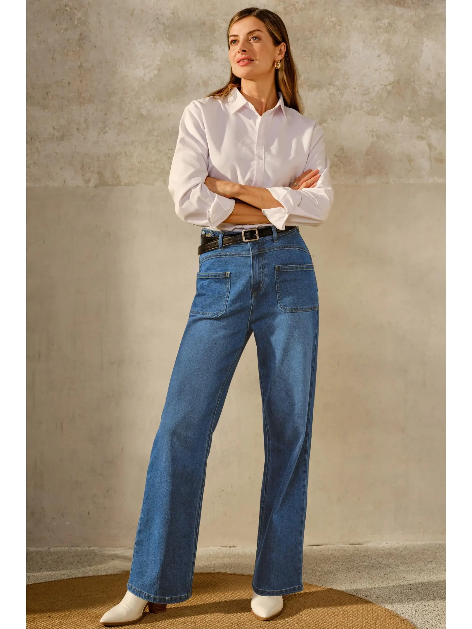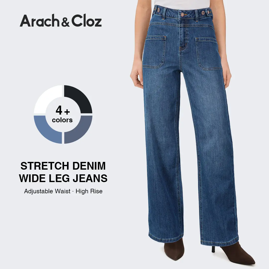 Arach&Cloz Women's Denim Adjustable Waist Buttons High Waisted Wide Leg Jeans 2026Arach&Cloz Women's Denim Adjustable Waist Buttons High Waisted Wide Leg Jeans 2026