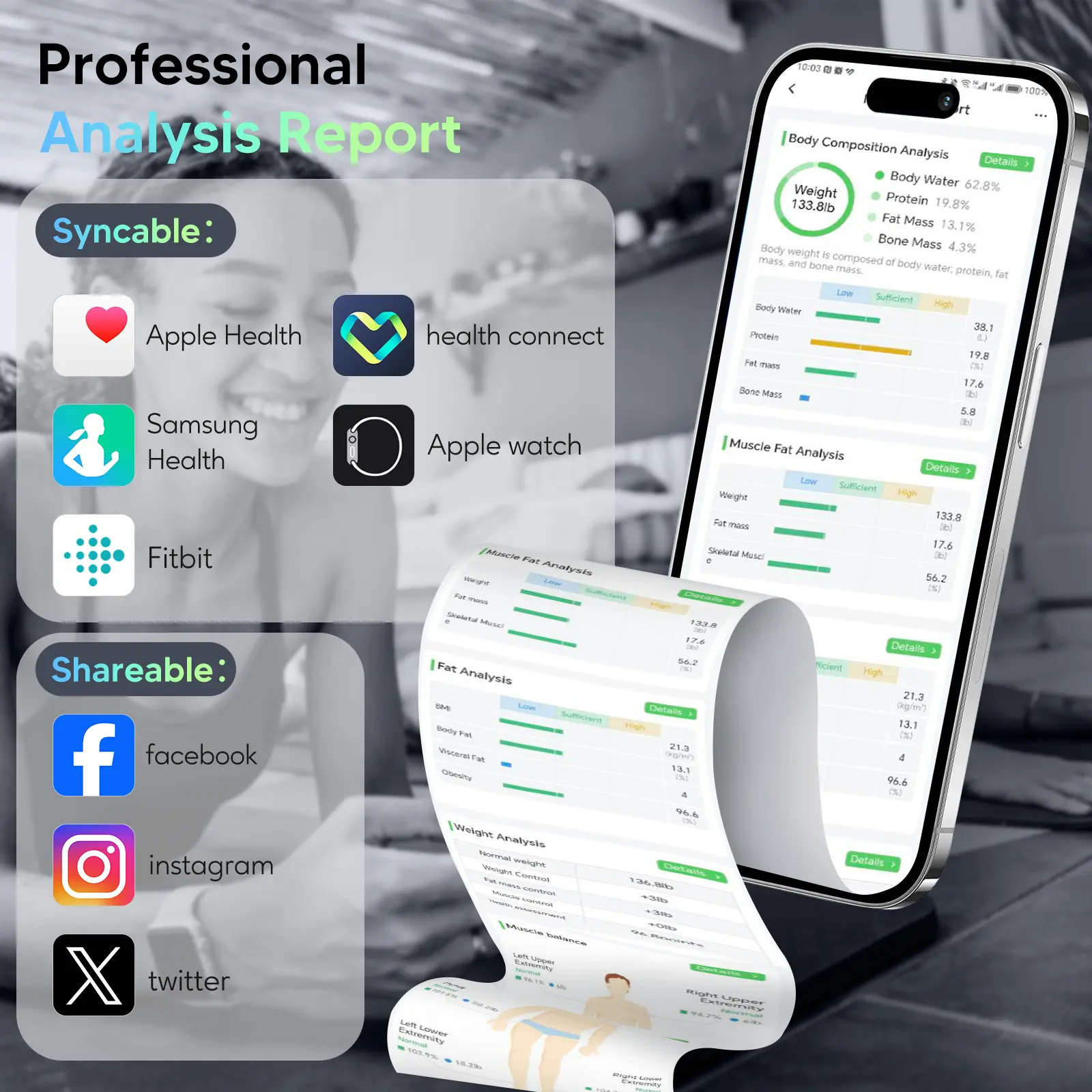 ·Bluetooth Connectivity: Syncs measurements automatically to the Arboleaf app, generating monthly, weekly, or yearly charts for progress tracking.