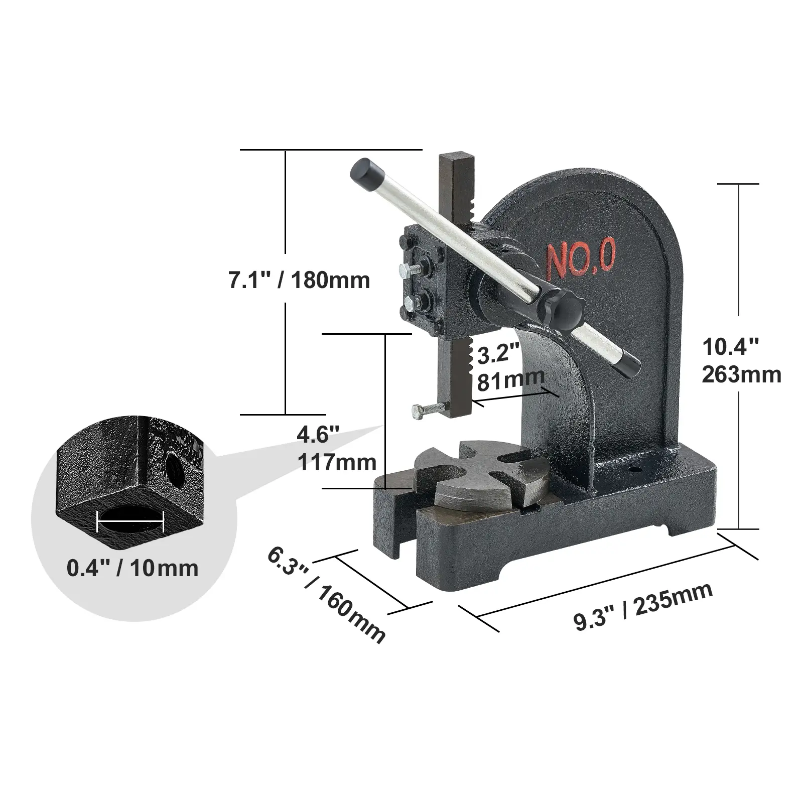 • Fix Items of Different Shapes: Equipped with a 3.5" diameter four-hole steel anvil plate, this desktop arbor press provides precise work assistance and can securely fix items of different shapes and sizes, catering to your diverse needs.