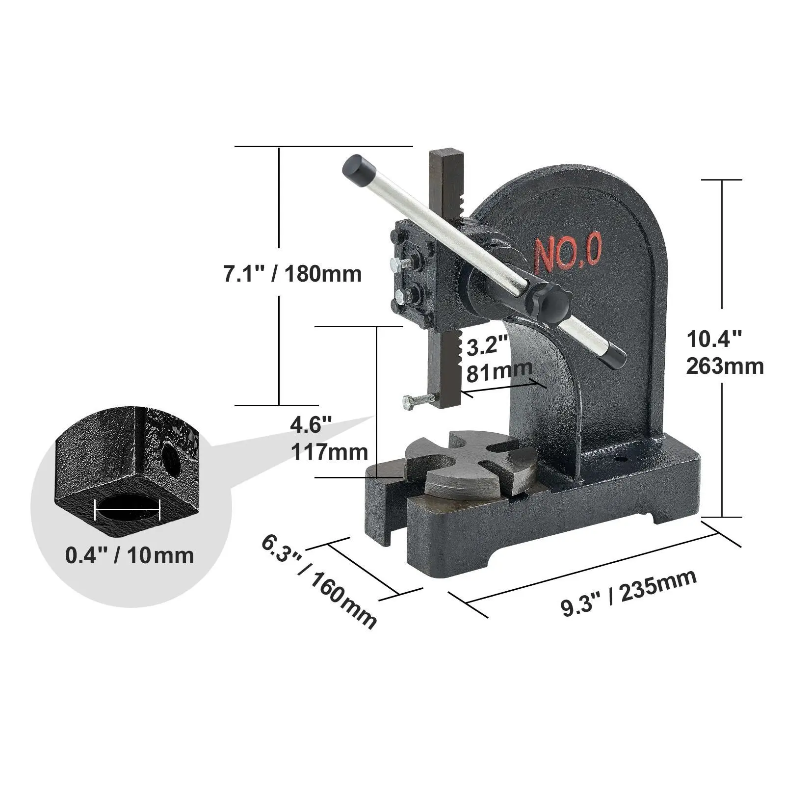 • Fix Items of Different Shapes: Equipped with a 3.5" diameter four-hole steel anvil plate, this desktop arbor press provides precise work assistance and can securely fix items of different shapes and sizes, catering to your diverse needs.