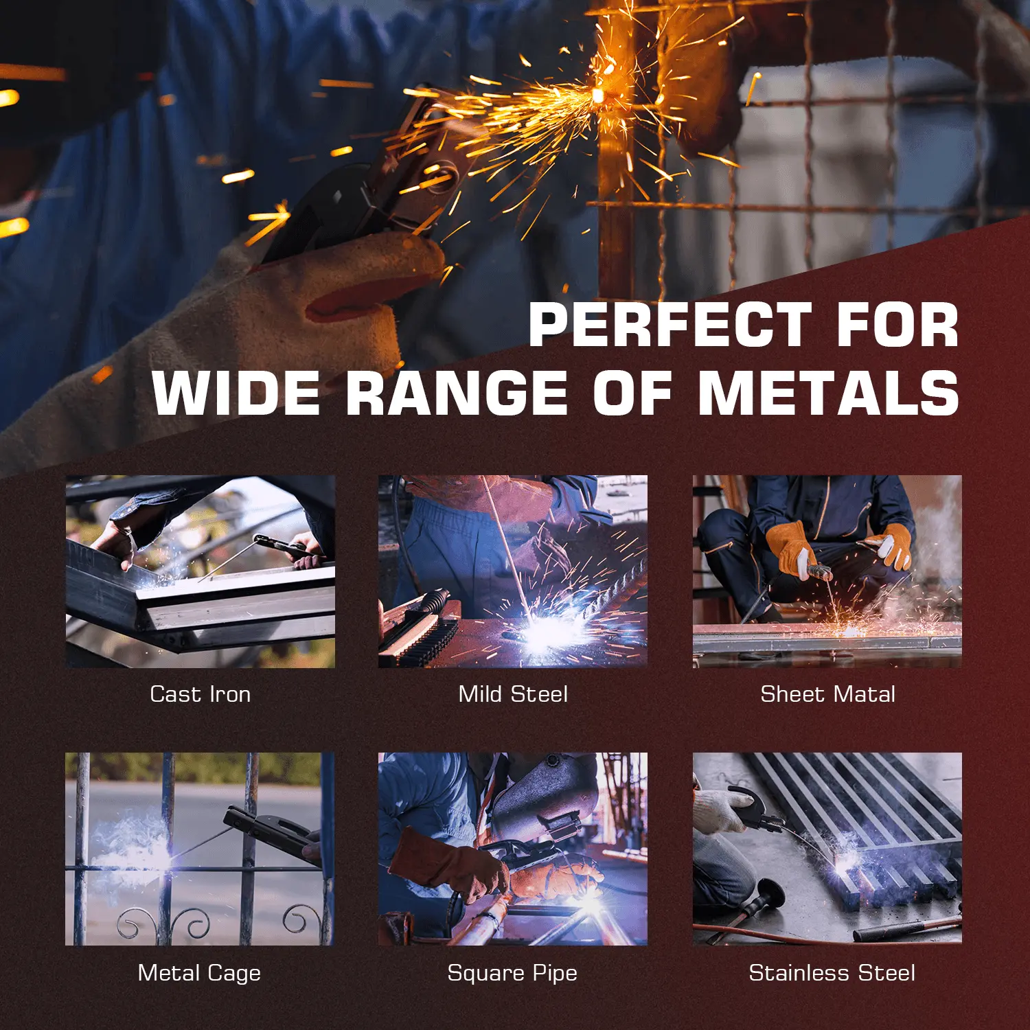 ·Premium Welding Performance: Support 6011, 6013 and 7018 electrode rods(1/16"-5/32"), and can also handle E6010 cellulose electrode. Perfect for welding mild steel, stainless steel, copper, cast iron and sheet metal. Suitable for outdoor maintenance, garage, farm and home DIY