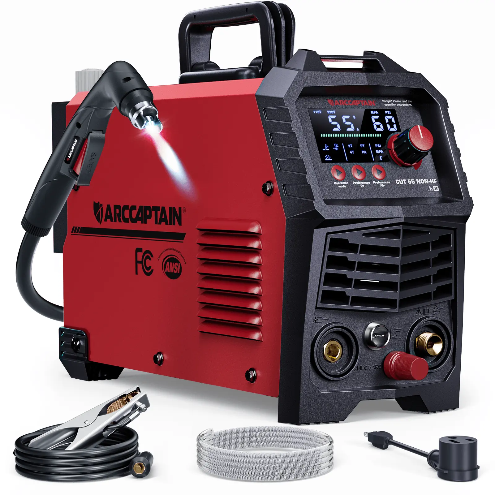 5. Arccaptain CUT55 Non-HF Plasma Cutter, Blowback Non-HF Pilot Arc Plasma Cutting Machine, Large LED Display IGBT Inverter 110/220V Dual Voltage, 3/5" Clean Cut, Mesh Cutting, Rust Removal, PA PT Adjustable, Black Friday Deals, Xmax Gift for Man and Dad