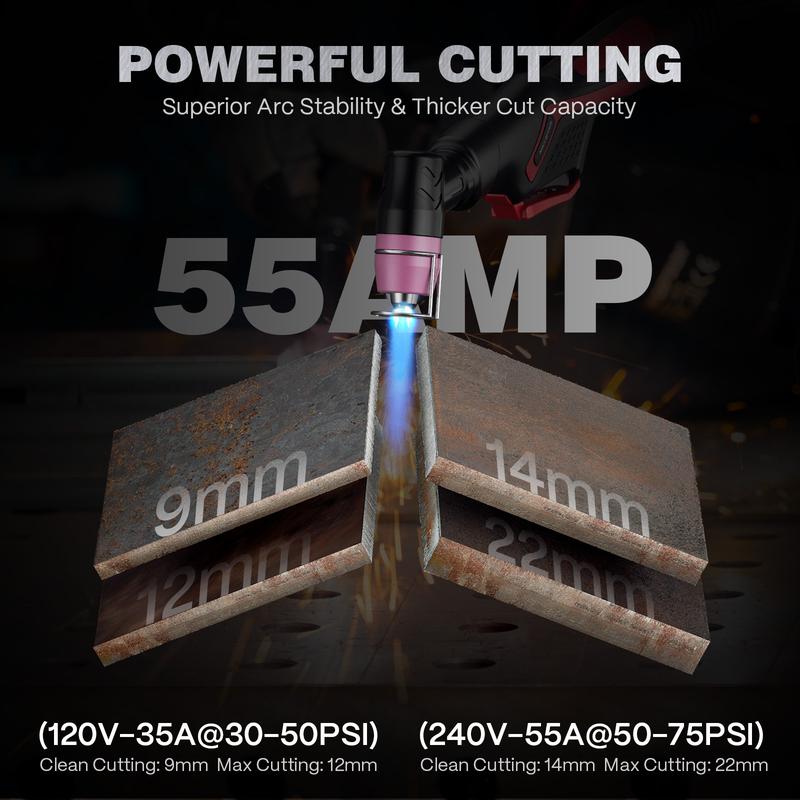 ARCCAPTAIN iControl CUT55 Prolux Plasma Cutter Machine, [APP Control] 55 Amp Non-Touch Pilot Arc, 120V/240V, Upgraded LED Display, Grid Cutting, Rust Removal, Air Pressure Detection for Home DIY, Multiprocess Cutting Machinefor Dad and Men
