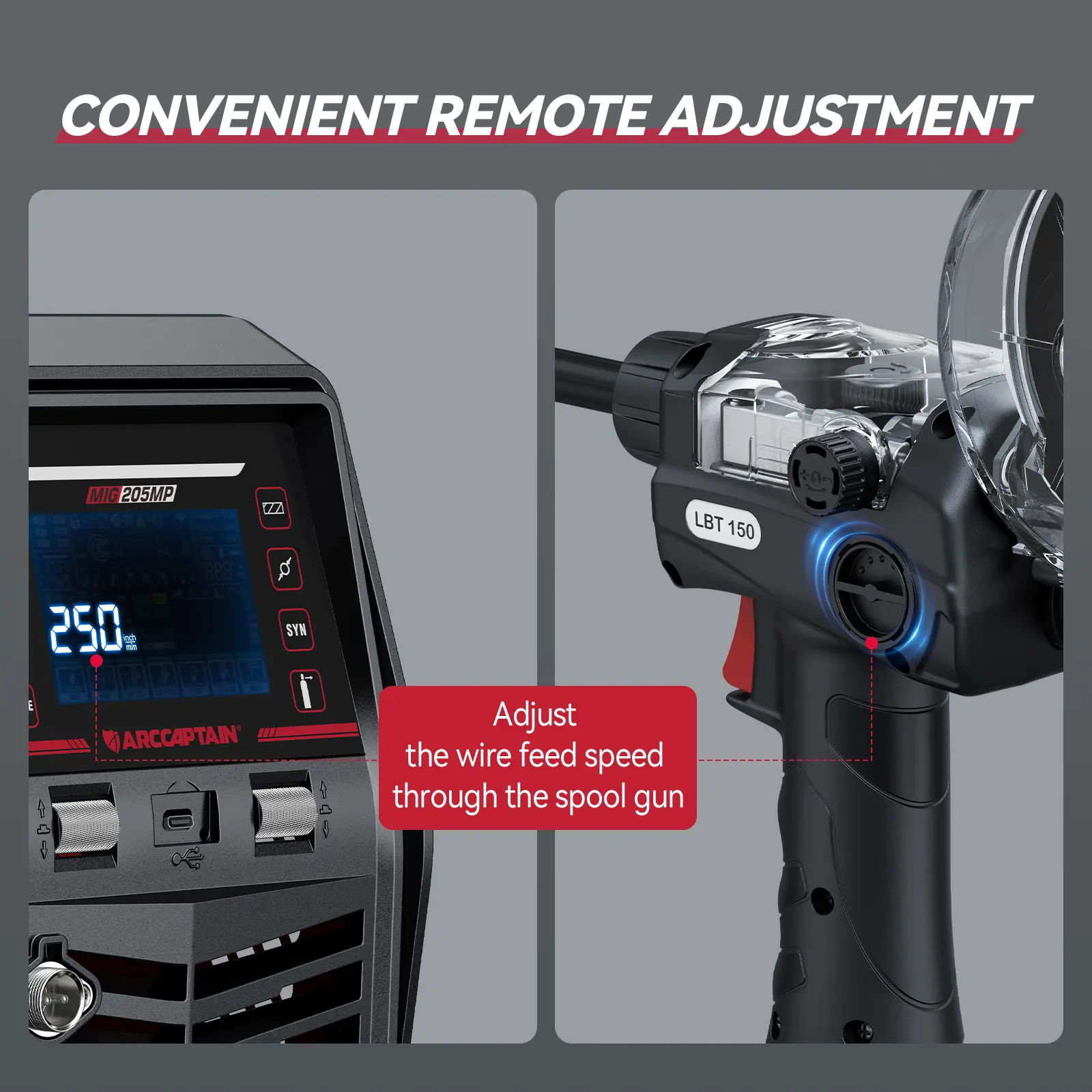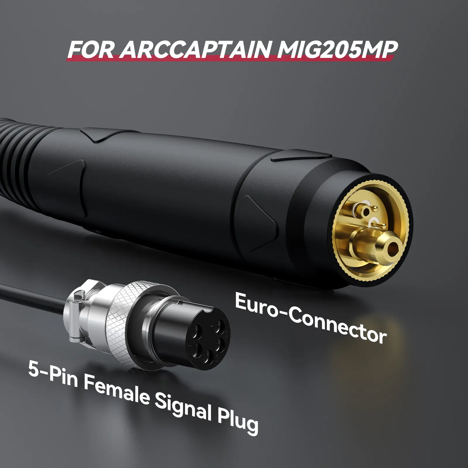 5. ARCCAPTAIN Spool Gun for Aluminum Welding Euro Connection 5-Pin 10FT for ARCCAPTAIN MIG205MP, MIG205PRO