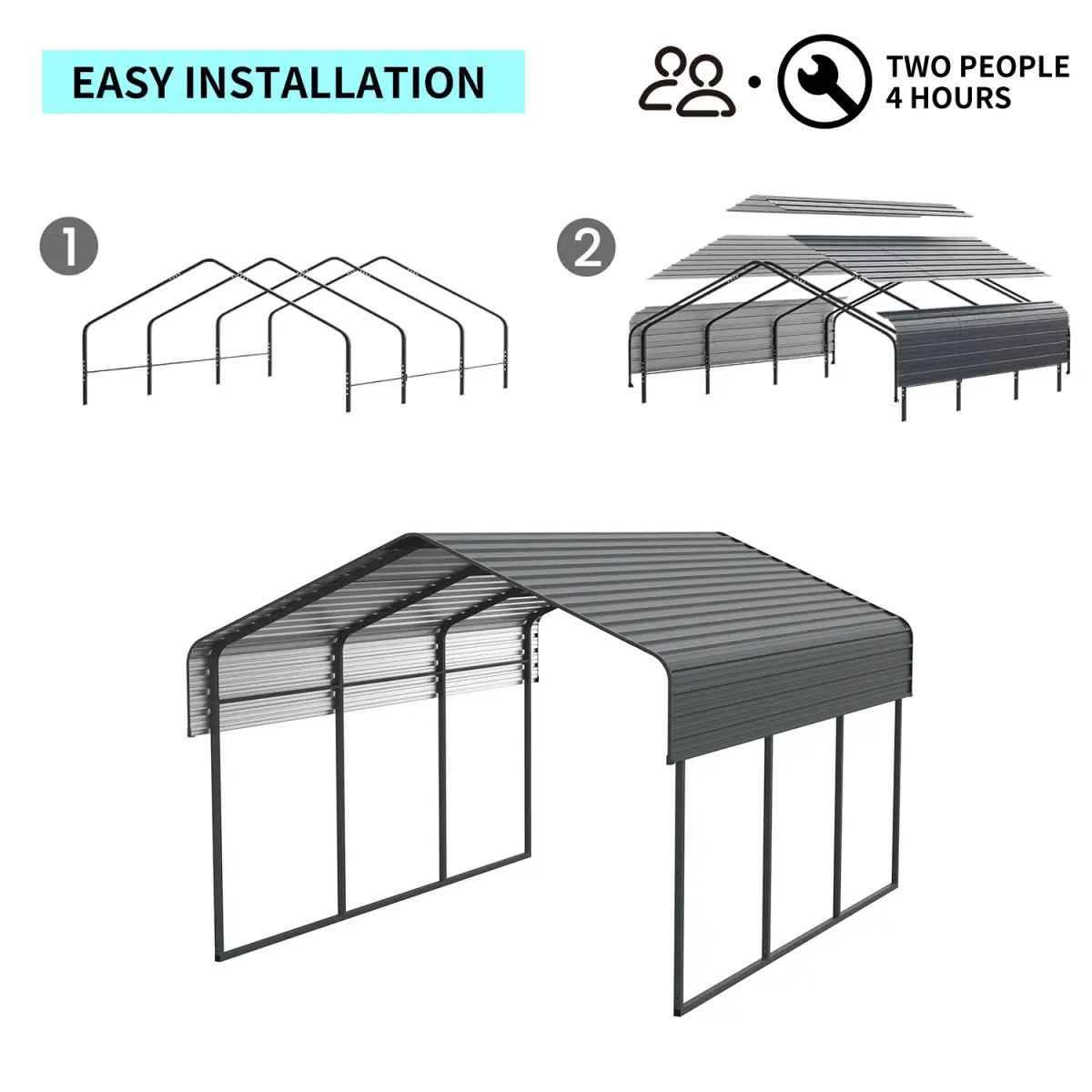 Versatile Outdoor Space for Multiple Uses: More than just a carport!This metal carport can transform into a shaded outdoor lounge, a workspace, or additional storage for your tools and equipment.Seamlessly blending into any outdoor setting, it provides the perfect shelter for your vehicles or an inviting space for relaxation and hobbies.