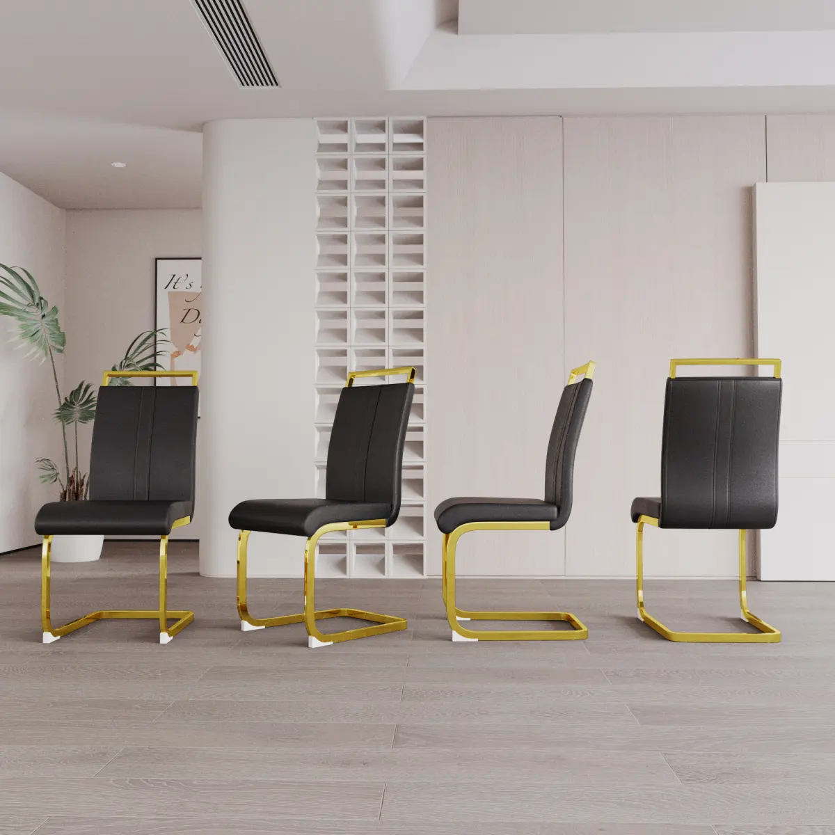 ·4.Firm and Sturdy - The sturdy dining chairs are complete with C-shaped gold plating base for a uniquely modern look, with anti-scratch plastic feet on the bottom to prevent damage to the floor.