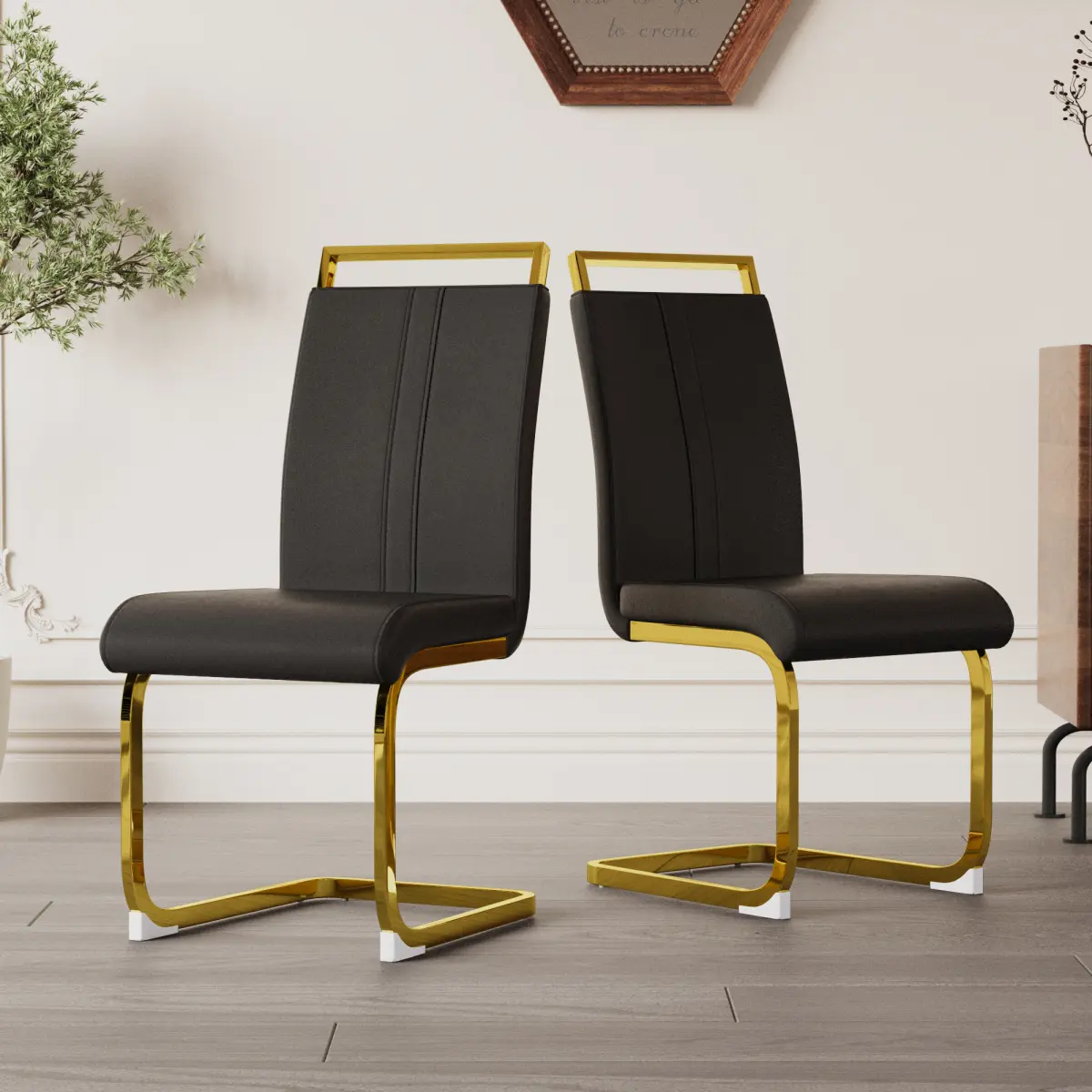 ·2.Modern designed dining chair - A stunning alternative to traditional dining chairs, the faux Leather Plating Golden Metal Leg Dining Chairs bring style to every occasion.