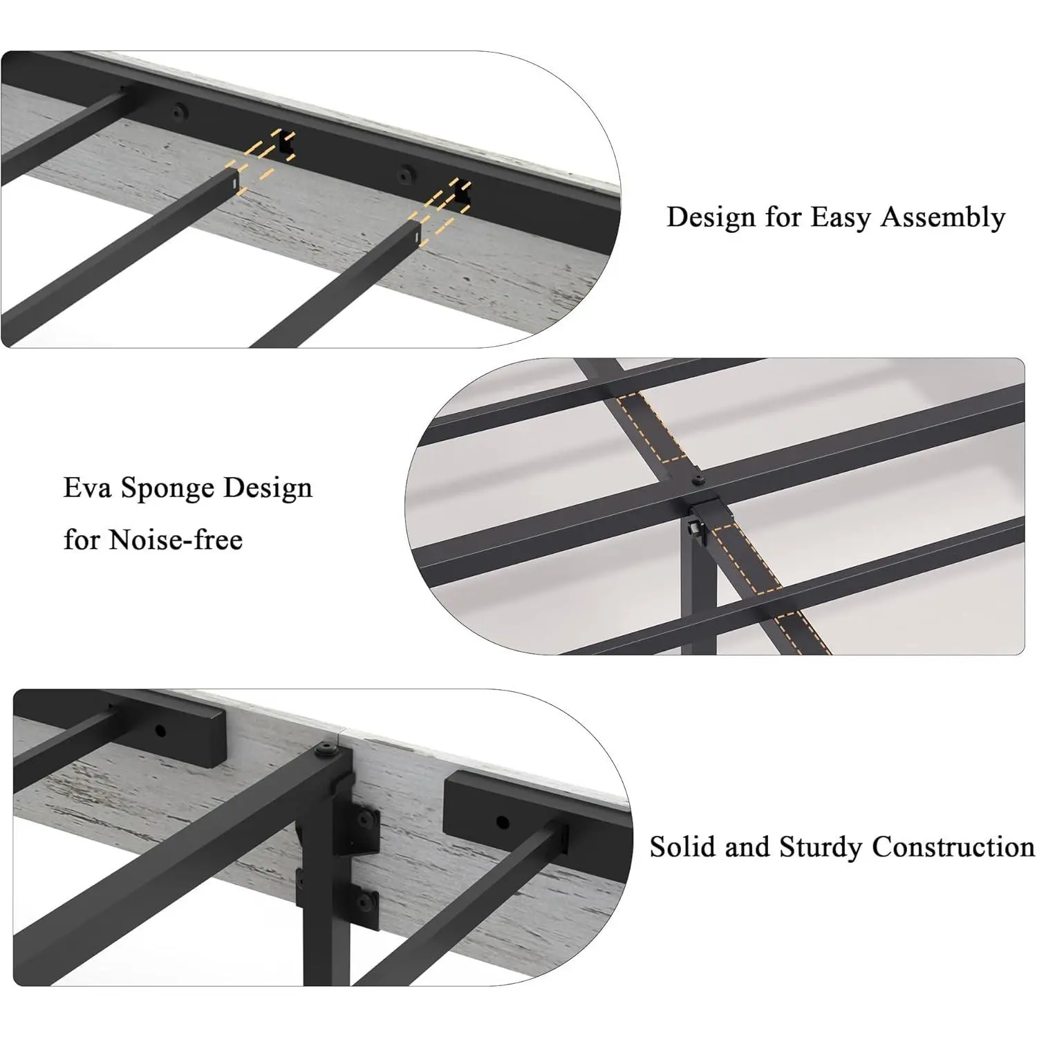 6.3-Inch Under-Bed Clearance: Allows for effective cleaning by a robot vacuum. EVA Mute Bars: Prevent mattress movement and reduce noise for a quiet sleeping experience.