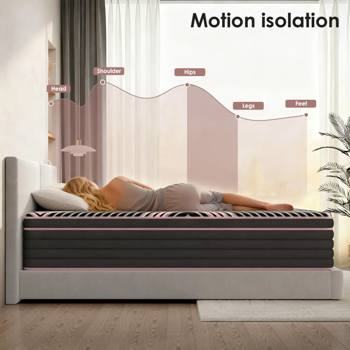 ·Hundreds of independent pocket springs provide targeted support that adapts to your body’s curves, ensuring comfort and proper alignment for deep relaxation.