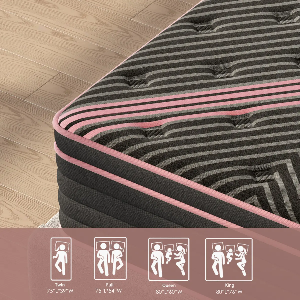 Item Code: W2889P423137 Product Type: Single Box Product Product Name: Twin Size Mattress, 10 Inch Hybrid Mattress, Individually Pocketed Innerspring, Medium Firm Color: Pink+Black Material: Foam+Spring Mattress Size: Twin