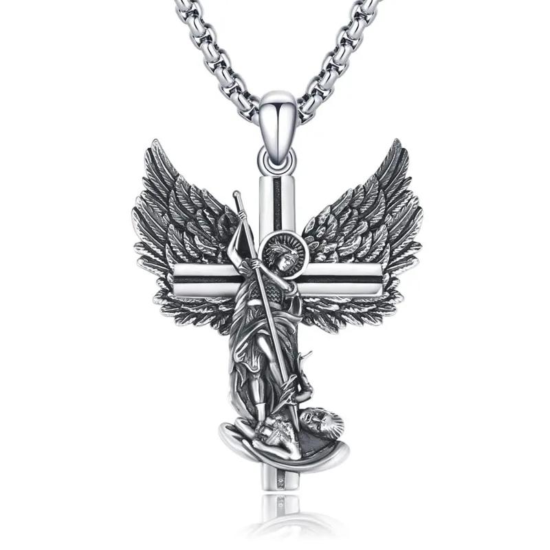 5. S925 Sterling Silver Archangel Michael Cross Pendant Necklace Unisex Religious Gift Essential