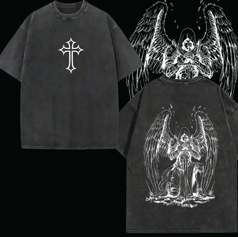 Archangel Michael Warrior Angel T-Shirt Washed, Christian Justice Fighter Tee, Faith and Goodness Graphic Shirt, Religious Spiritual Armor of God Top, Divine Battle Jesus Tee, Christian Apparel Streetwear Gym Menswear