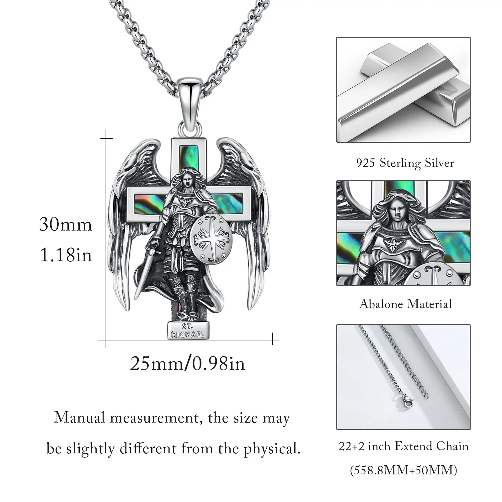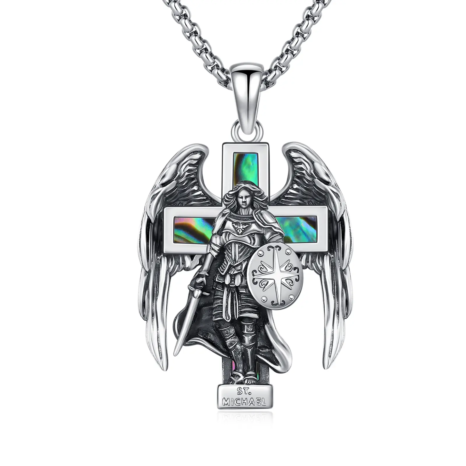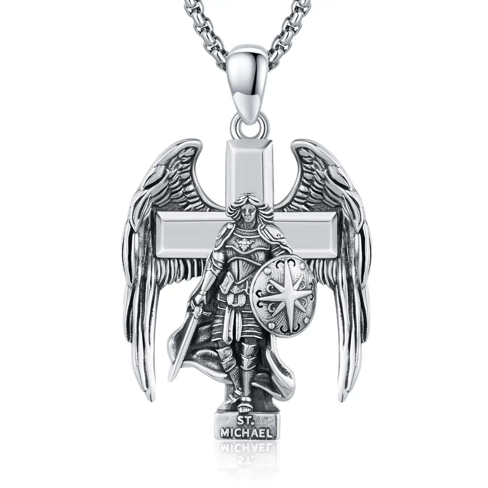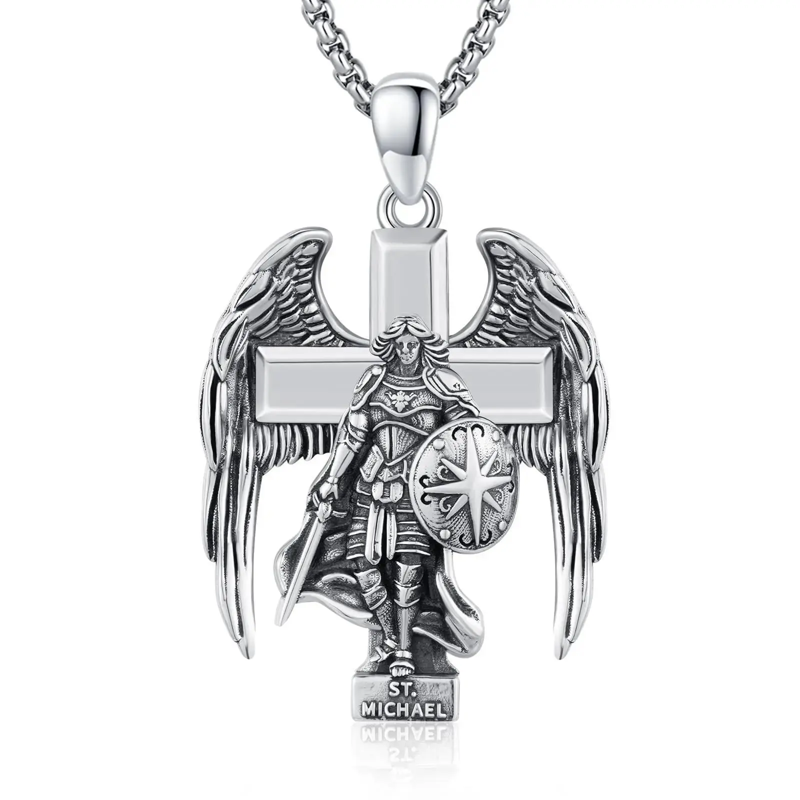 🌟 S925 Sterling Silver Archangel Saint Michael Cross Pendant Necklace for Men and Women Springtok 🌟