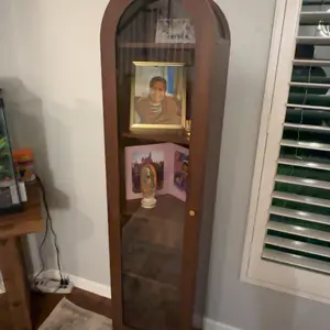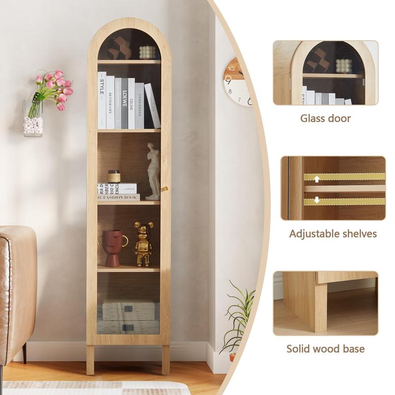 ·【 Product Advantage 】This arch cabinet has 5-Tier shelves and is equipped with organic glass doors, allowing for more flexible display and storage of your items. Solid wooden legs and anti tipping device design for greater safety and reliability. This freestanding cabinet can be used as a file cabinet in the office; or as a display shelf in the living room or next to the TV; or as an ornaments shelf in the bedroom/cloakroom etc.