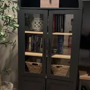 I LOVE this cabinet! I ordered one and ended up ordering another to put beside my TV. Took some time and patience to put together but instructions were very helpful overall. I’m thinking of getting another in oak for a different room :) I love the handles on the doors, they stand out and make any room look like you had an interior designer there.