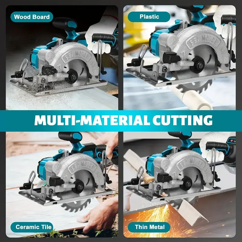 ·Saw Blade Protection Design: Mini Circular Saw is specially designed with a hidden blade guard for the circular saw blade. You can find it on the top of the circular saw. When the work stops, you can rotate the metal buckle to pull out the guard to protect the blade. When you want to use the cordless circular saw for work, simply twist the guard counterclockwise to lock it back in place. The hidden design allows it to perform naturally during work. Additionally, the saw blade of this mini circular saw can be replaced at any time using the included wrench and socket tool, supporting replacement of blades up to 5.5 inches in maximum size