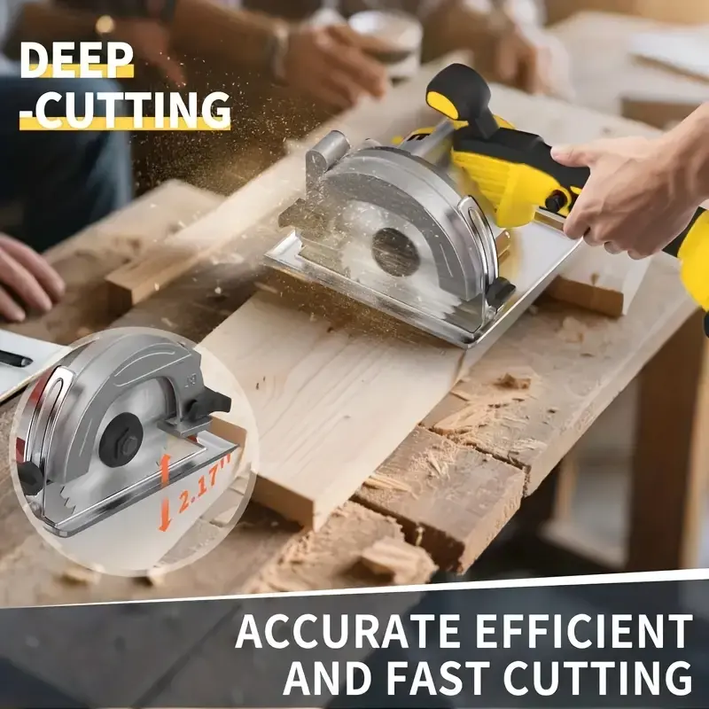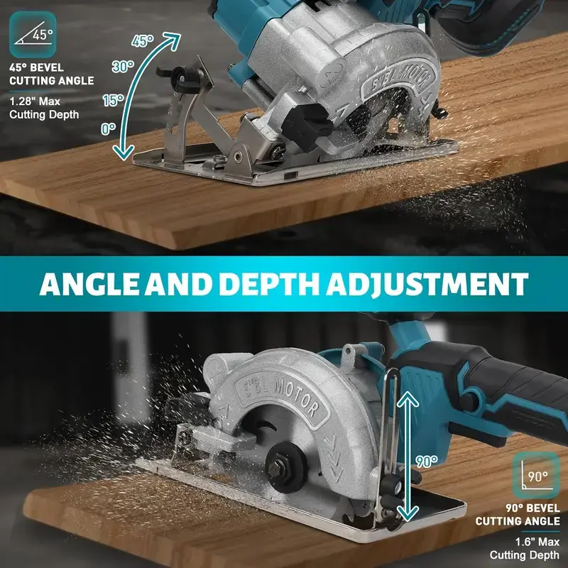 ·Precision Depth & Angle Adjustment: Mini Circular Saw features 0°–45° adjustable cutting angles, ideal for miter cuts, framing, and edge trimming. With a maximum cutting depth of 1-3/4" at 45°, it ensures precision and high-quality finishes for all woodworking projects