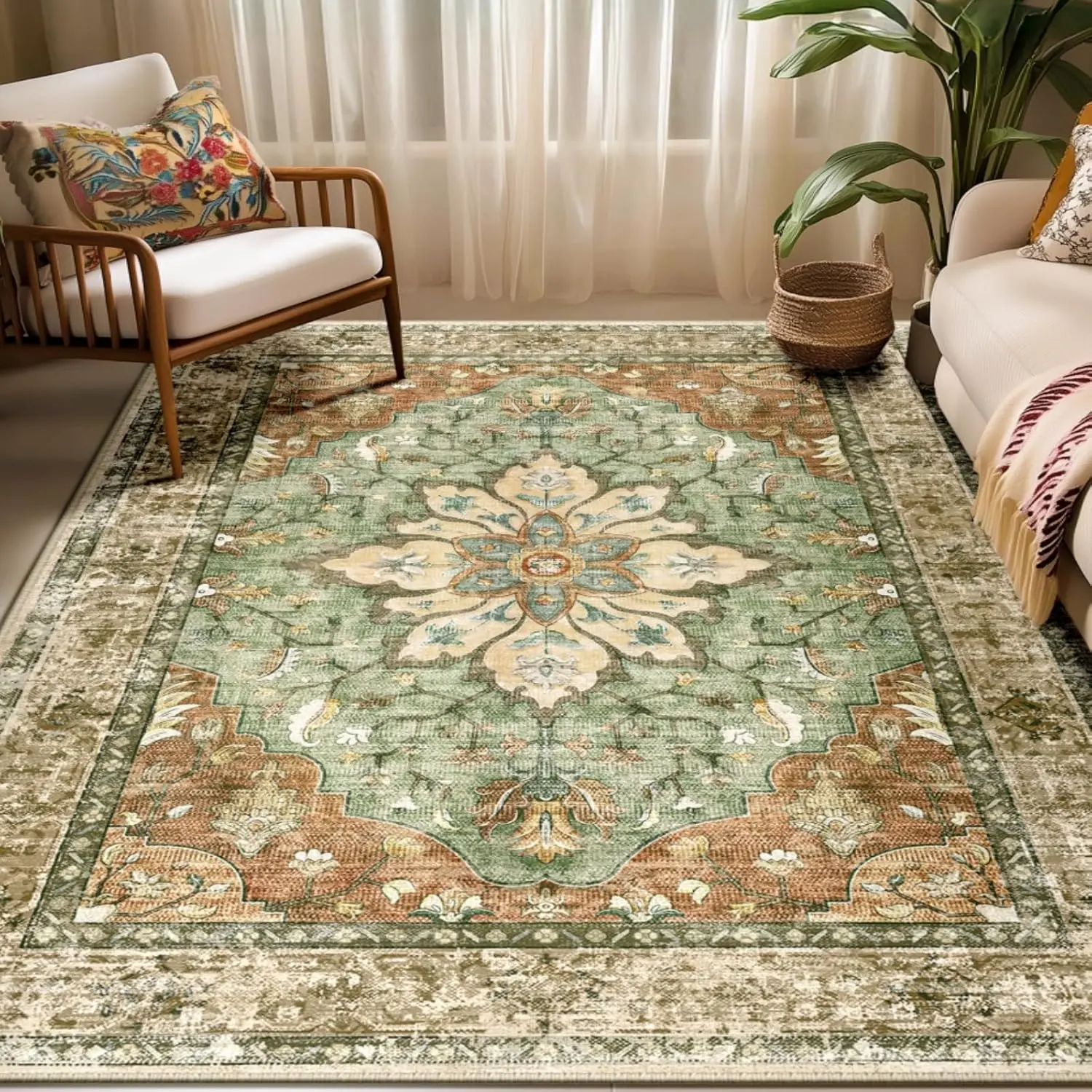 BESTSWEETIE Machine Washable Area Rugs for Living Room Floor Carpet Doormat Vintage Runner Rug for Bedroom Indoor Dinning Room Nursery Large Area Rug Outdoorfun