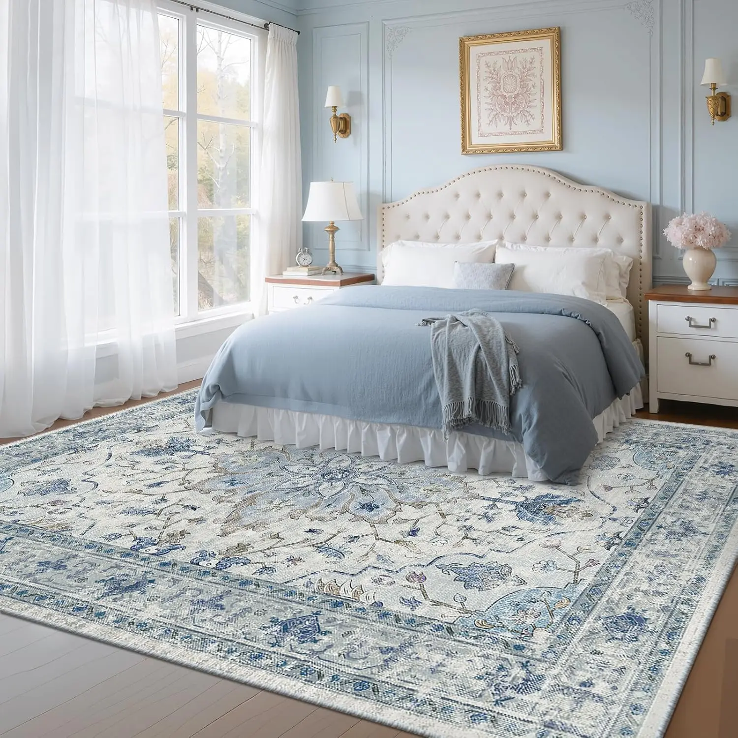 ยทFriendly & Non Slip: The area rugs are made of reinforced skin friendly coral fleece, soft and comfortable. The healthy and high quality fiber is friendly to kids and pets. It it high quality and can prevent from pets scratching and indoor high traffic. The rug adopts TPR backing, which is a safer and more friendly non-slip material. You can feel free to seat or walk on this vintage rug.