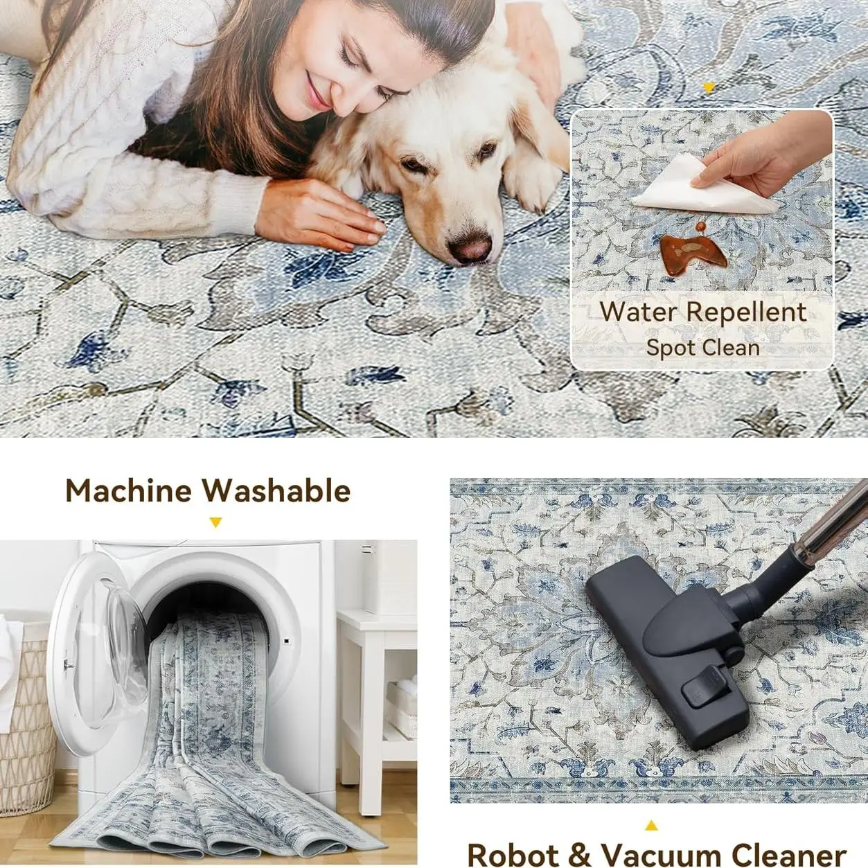 ยทWater Repellent & Multi-Use: Available in a variety of colors and sizes, the rugs can meet different living spaces requirements. Perfect for entrance, foyer, hallways, kitchen, living room, dining room and other high traffic area indoor. The Rug surface is water repellent, stain-resistant and easy to clean.