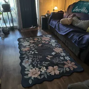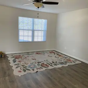 This rug is absolutely gorgeous. I actually like the fact that it’s thin and easy to clean. It’s gorgeous the scallop edges. It just really makes it look more expensive than it is.