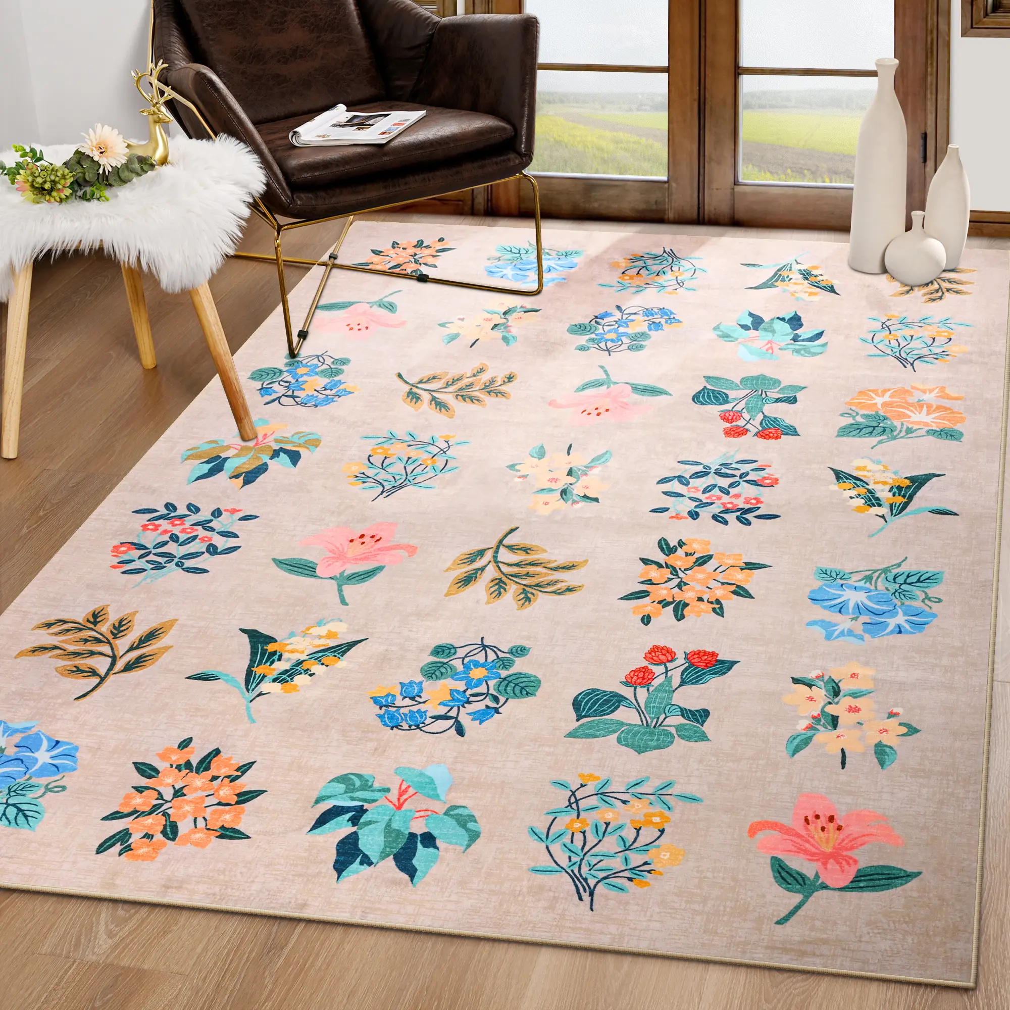 Lochas Floral Washable Living Room Area Rug ,Non-Slip Low-Pile Rugs for Entryway, Throw Small Stain Resistant Kitchen Rugs, Print Carpet for Office, Bedroom, Laundry Room, Nursery, Home Decor