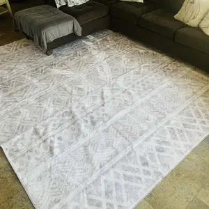 Amazing rug. I love the softness as well as how it fits almost my entire living room with just a 8x10. It is easy cleanup and you can also add it to the washer for a deep clean if needed. I picked the white and grey since it goes perfectly with my farmhouse decor.