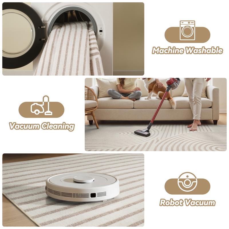 This rug is so soft and beautiful and I actually got a second one. My ONLY complaint is that it’s very hard to vacuum. The vacuum sucks it up. My iRobot works well on it except the corners sometimes get caught. It’s washable and non slip and I would buy it again. The softness and beauty win it!