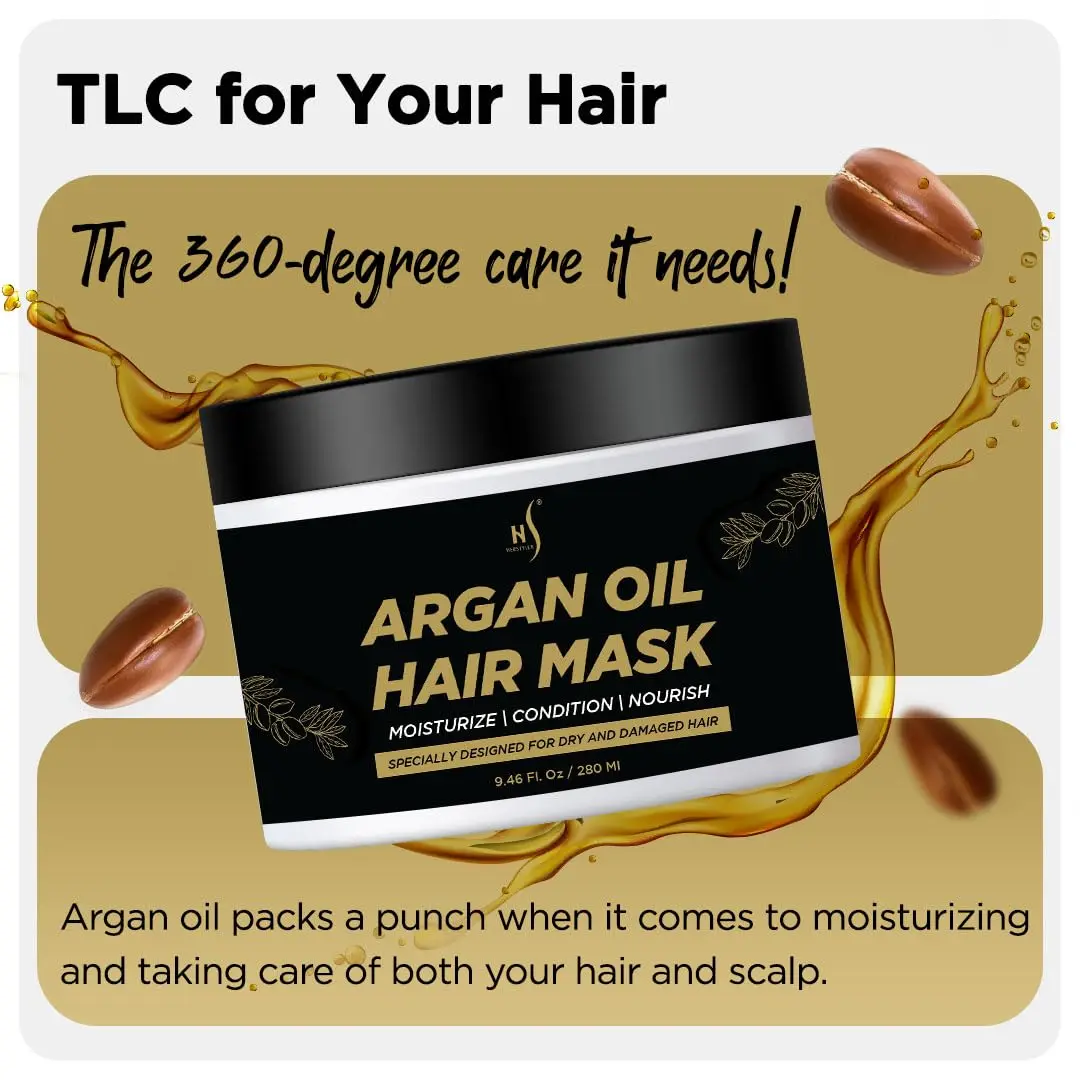 Ultra-moisturizing Argan Oil Hair Mask deeply nourishes and softens hair, leaving it smooth and shiny.