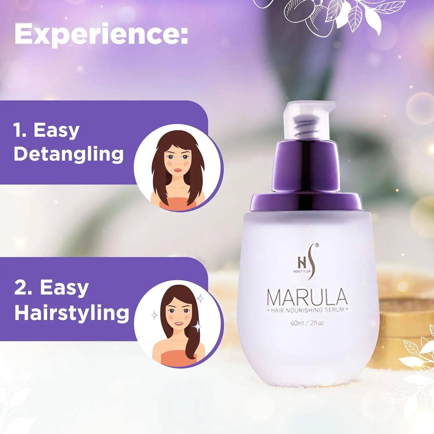 Frizz-fighting Marula Oil Hair Serum tames flyaways and adds moisture for sleek, silky hair.