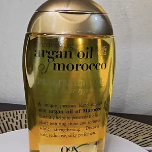 Revive and strengthen dry, damaged hair with OGX Renewing + Argan Oil of Morocco Penetrating Oil. This deeply hydrating oil is infused with rich, cold-pressed Moroccan argan oil to penetrate the hair shaft, improving strength, elasticity, and shine. Ideal for all hair types and textures, this lightweight yet powerful formula helps to soften, smooth, and restore hair’s natural luster while sealing in essential moisture.
