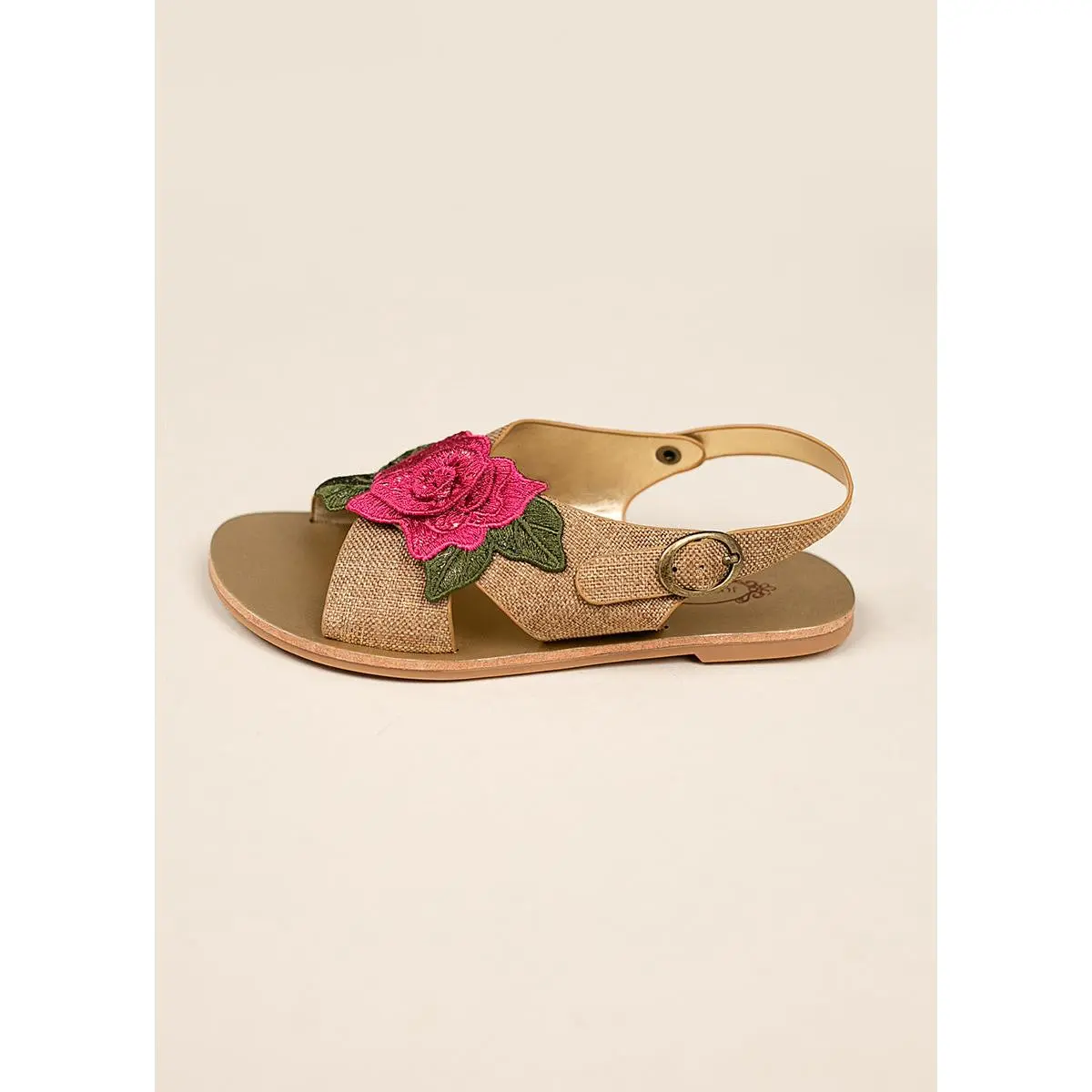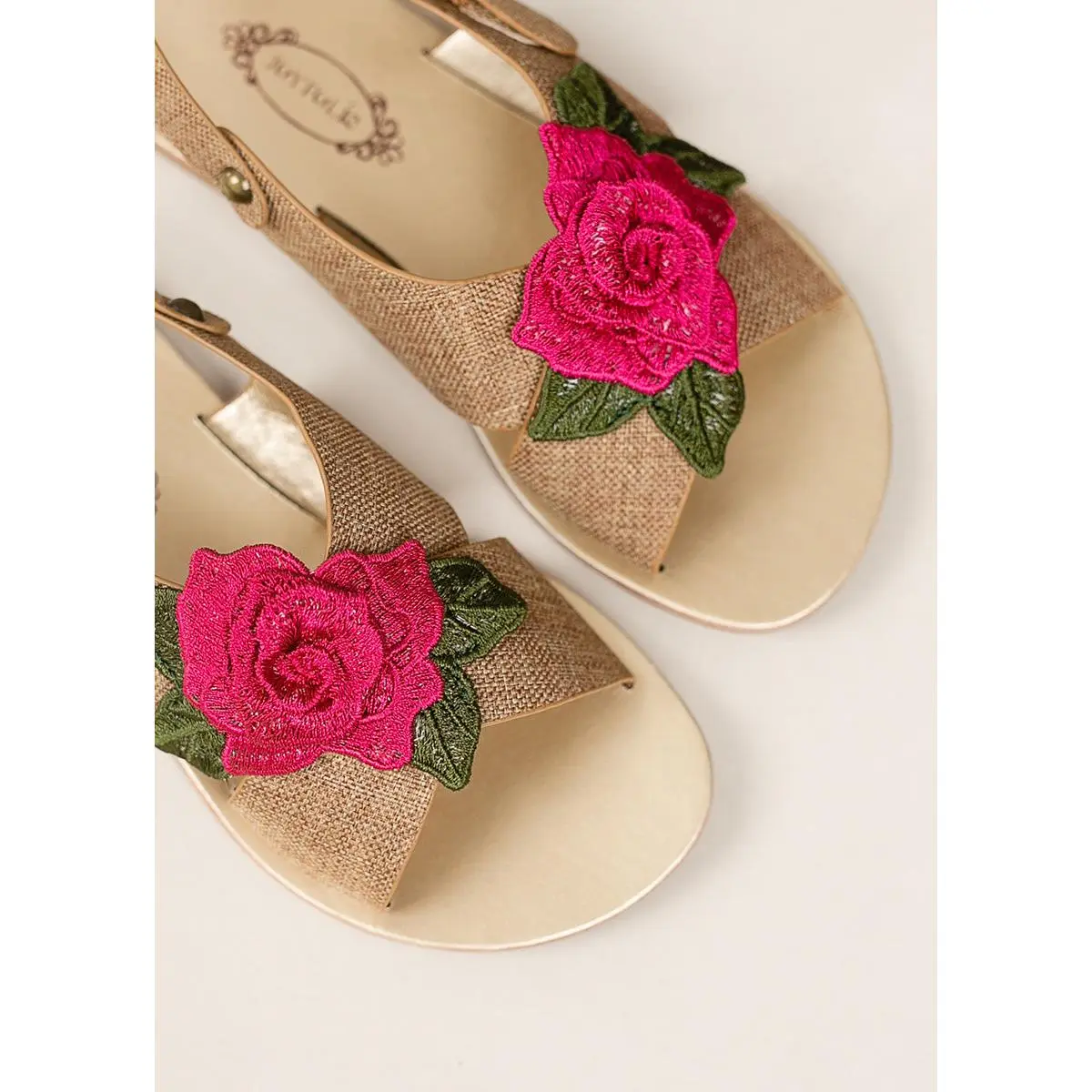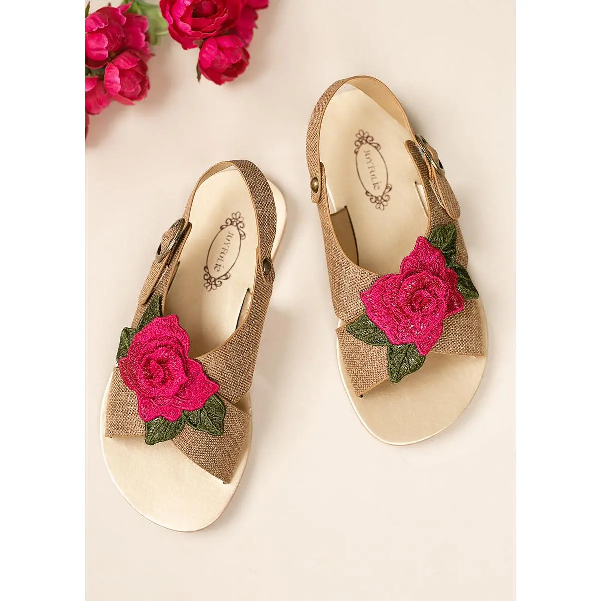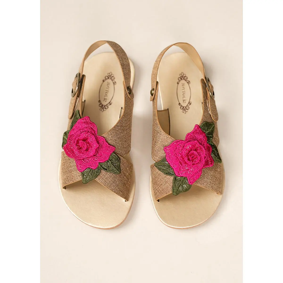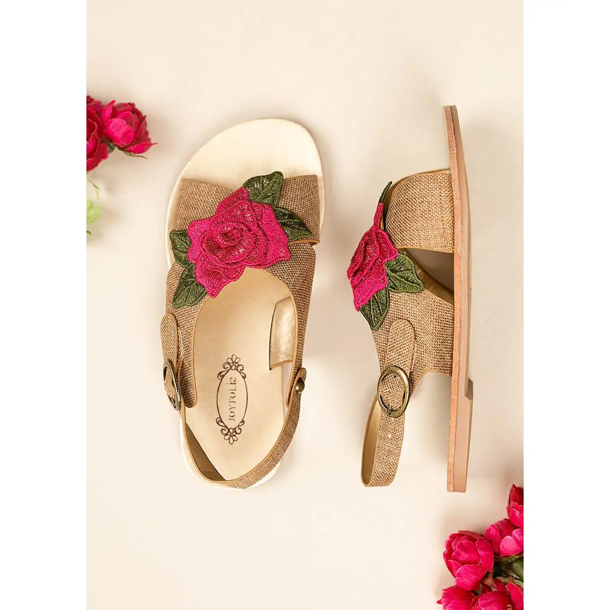 Intricate embroidery gives these basic sandals a fashionable flare.