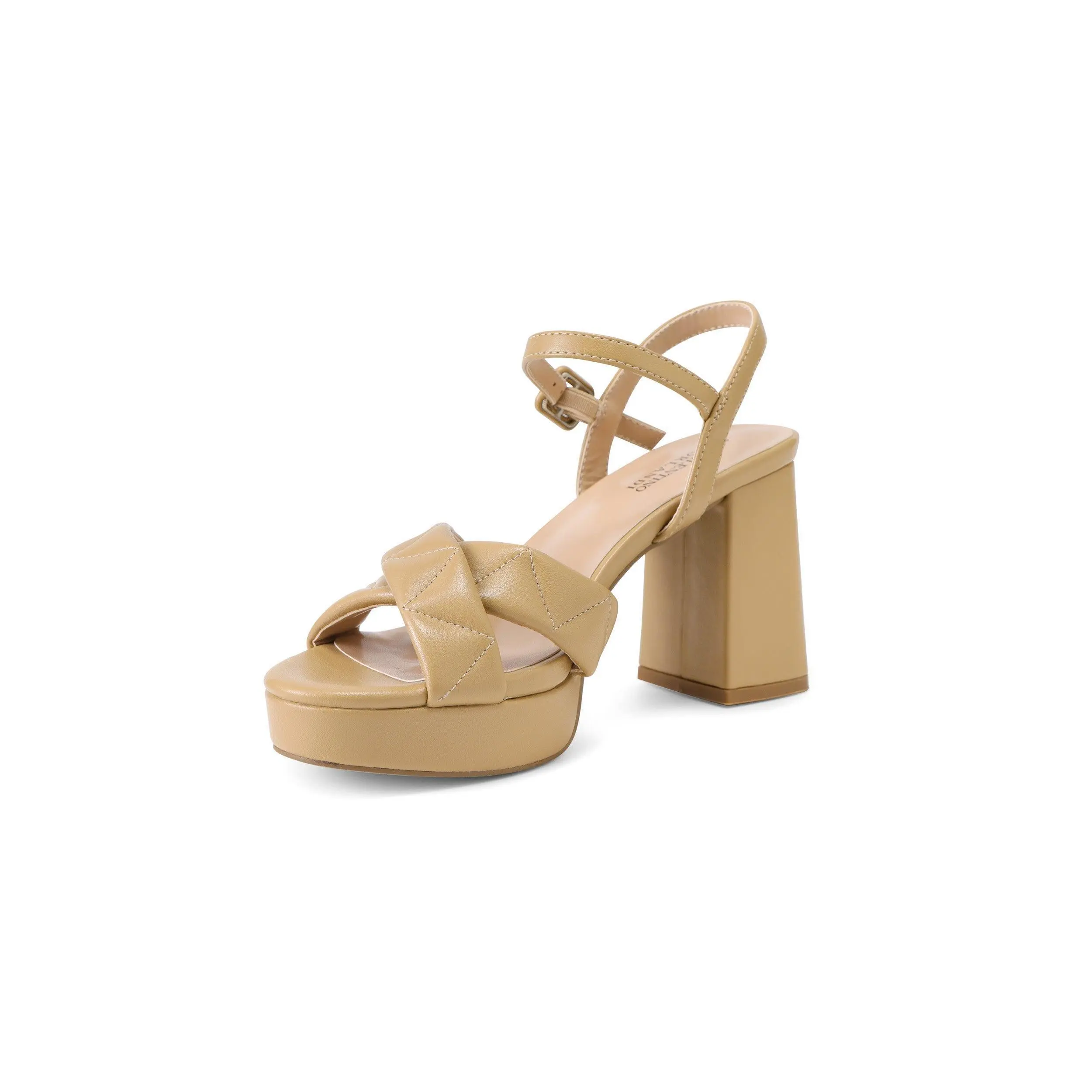 The ARIANNA Platform Heel brings a contemporary twist to classic femininity. Designed with quilted crossover straps and a sturdy block heel, it offers both height and stability. The adjustable ankle buckle provides a secure fit, while the cushioned sole ensures lasting comfort. Perfect for pairing with dresses or wide-leg trousers, this chic platform sandal transitions effortlessly from day to night.
