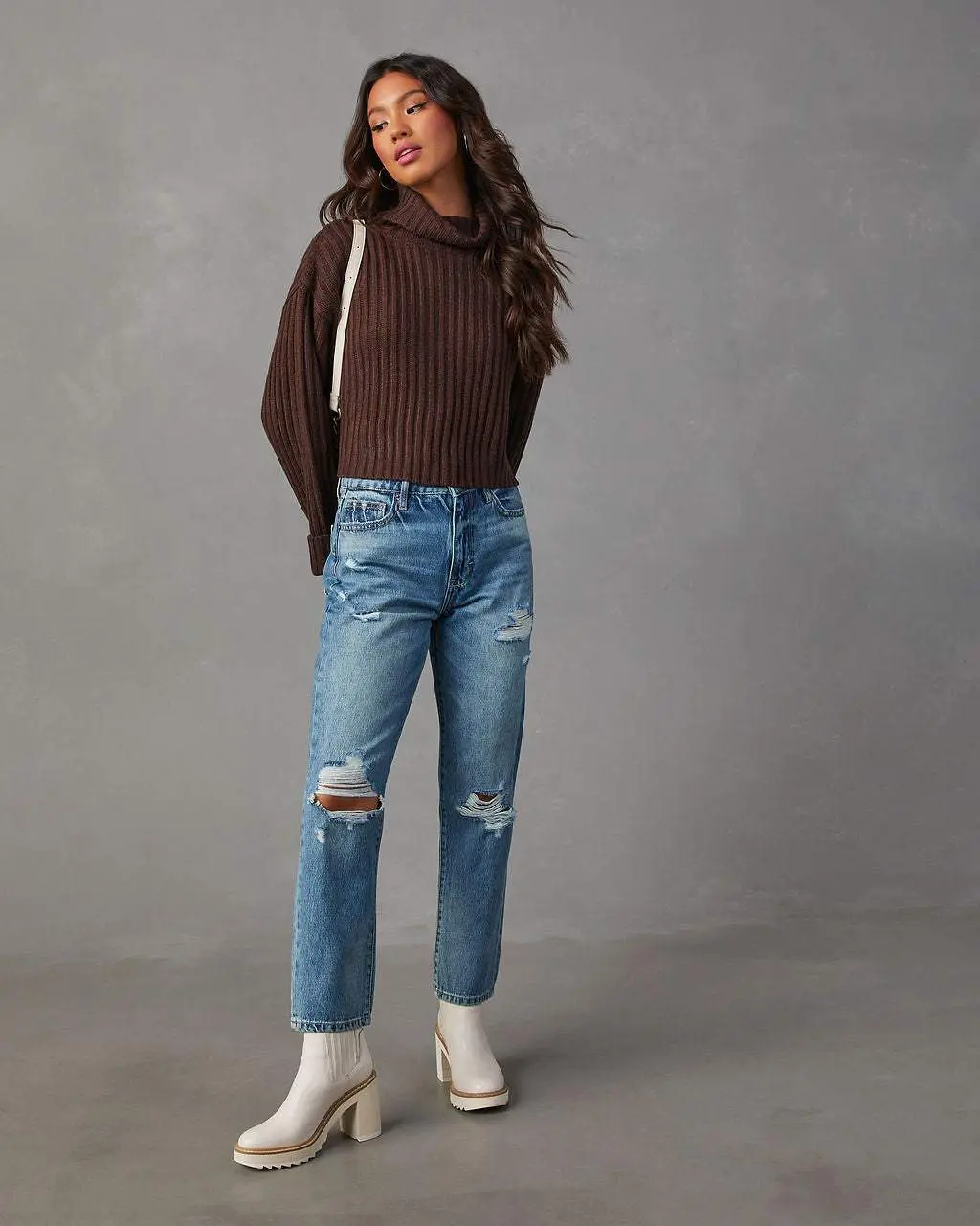 Cozy meets casual in the Arielle Ribbed Knit Turtleneck Crop Sweater that features a soft knit fabric, turtle neckline and cropped fit. It pairs well with midi skirts, jeans and faux leather bottoms for any event on your calendar.