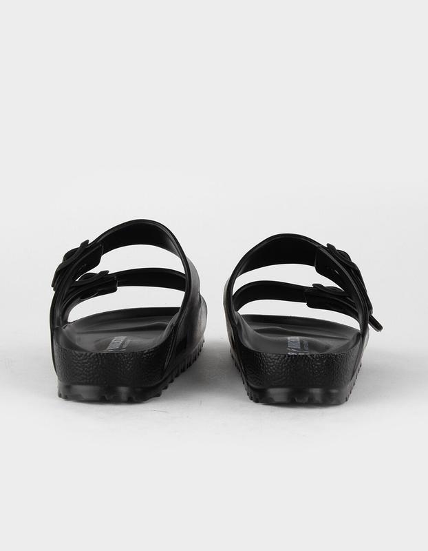 Birkenstock Arizona EVA Sandals. The legendary two-strap design from Birkenstock - the Arizona. Modeled on the cork original, this sandal is made from ultra lightweight and highly flexible EVA. These sandals are shock absorbing, waterproof, and skin-friendly. Wear them at the beach, in the garden, or around the gym and after workouts. It's the perfect addition to your classic Birkenstock sandals. Imported.
