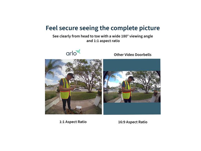 ·See a person from head to toe or a package on the ground with 180-degree wide field view with your wireless doorbell with camera